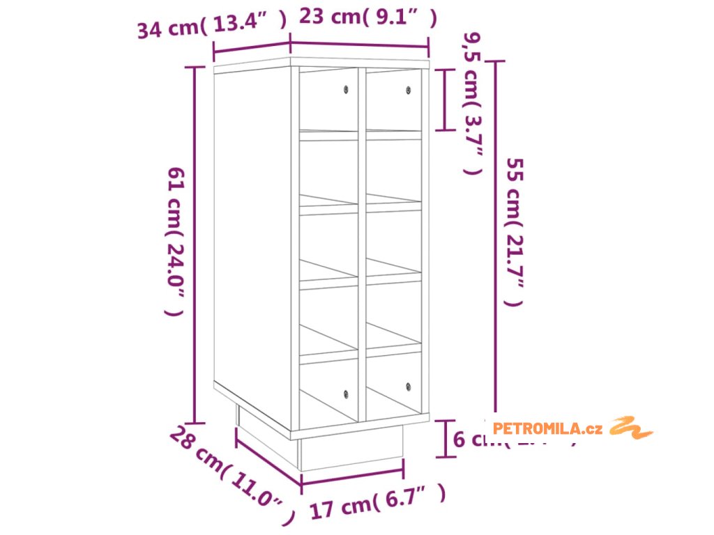 Skříňka na víno bílá 23 x 34 x 61 cm masivní borovice