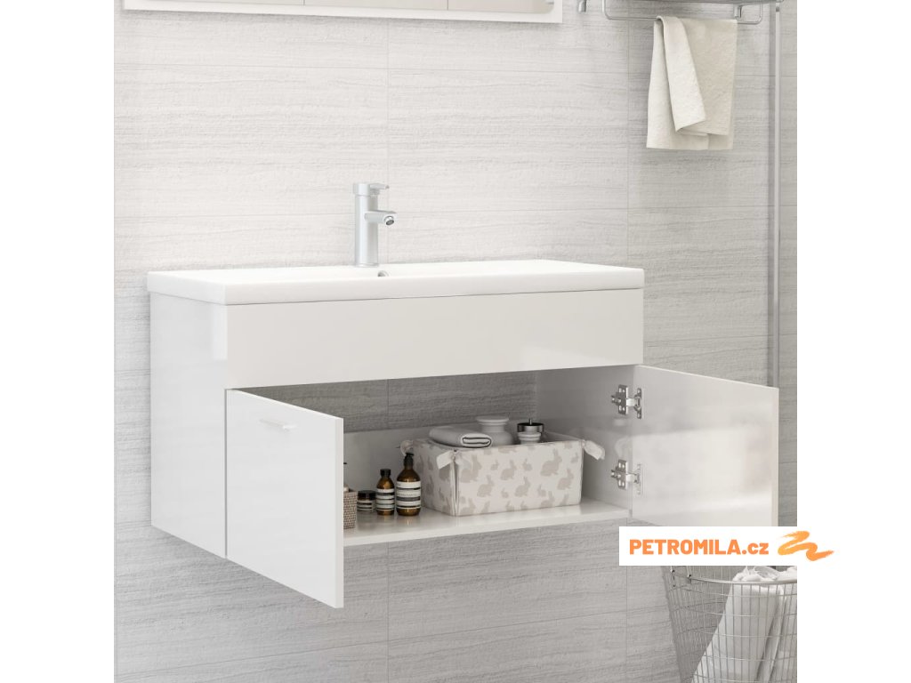 Skříňka pod umyvadlo bílá vysoký lesk 90x38,5x46 cm