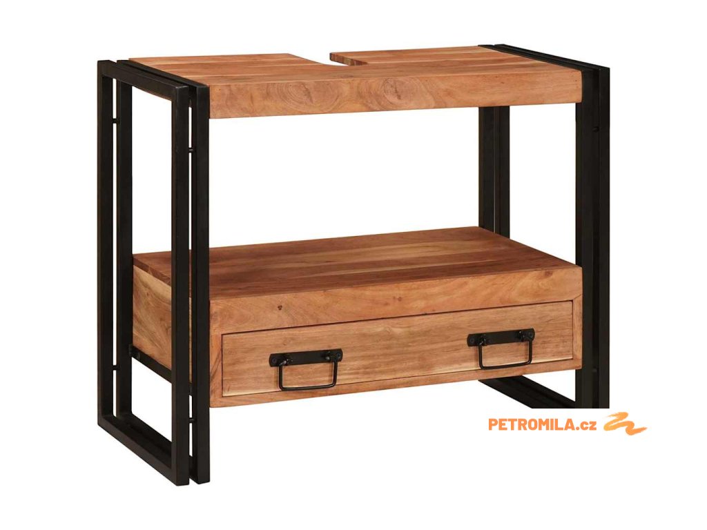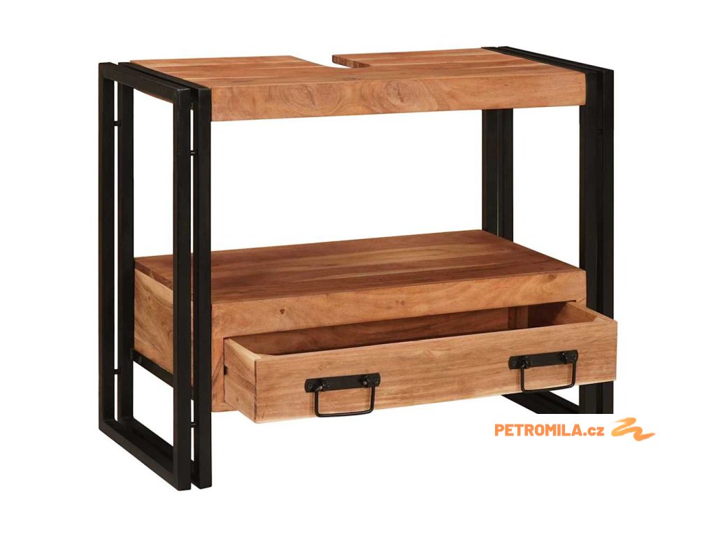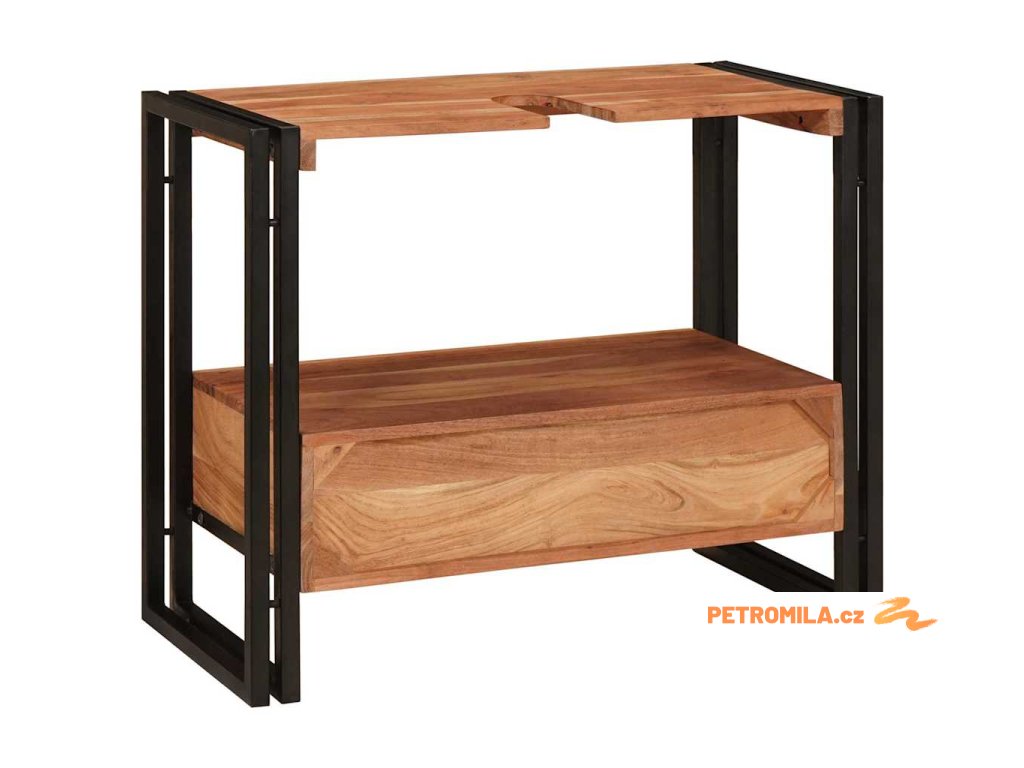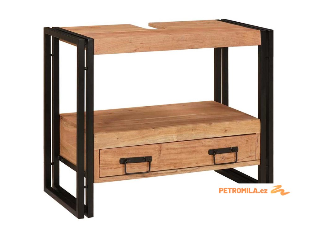 Skříňka pod umyvadlo s policí Masivní akáciové dřevo a železo