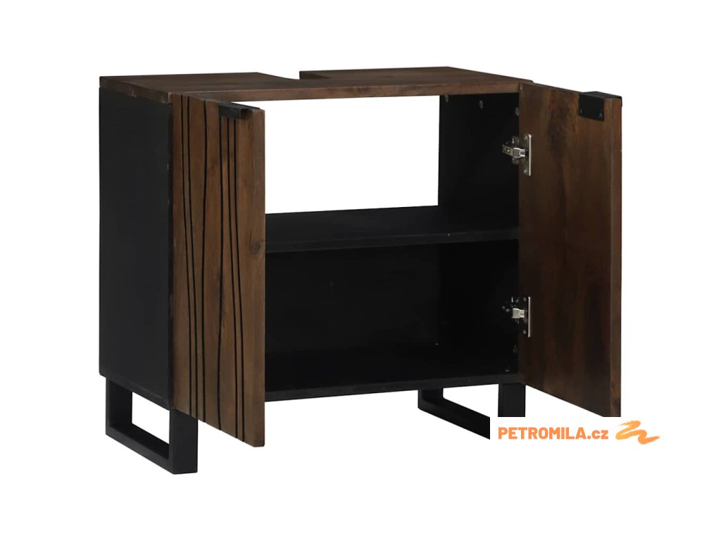 Tento koupelnový skříňka je ideální na úložný prostor pro jakoukoliv moderní koupelnu. S elegantním minimalistickým designem kombinuje funkčnost se stylem a hodí se do každého interiéru. Konstrukce z inženýrskýho dřeva a železné nohy zajišťujou stabilitu a dlouhou životnost. Texturovanej černej povrch dodává eleganci, což z něj dělá středobod místnosti.