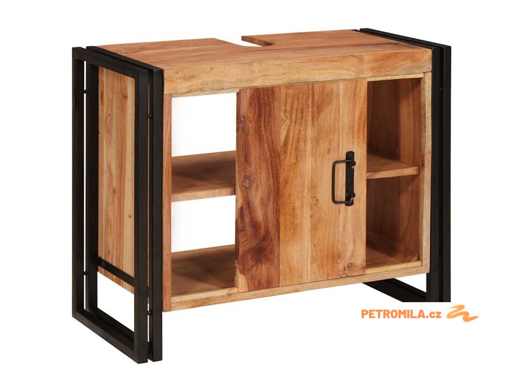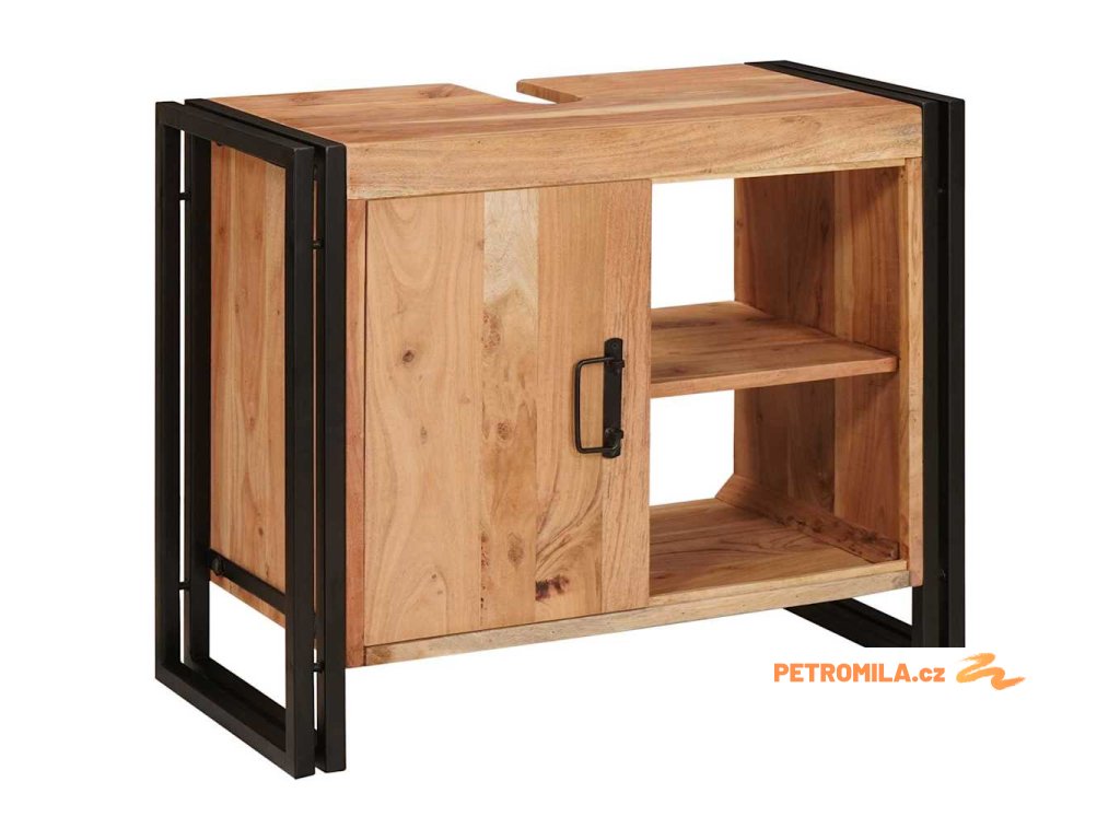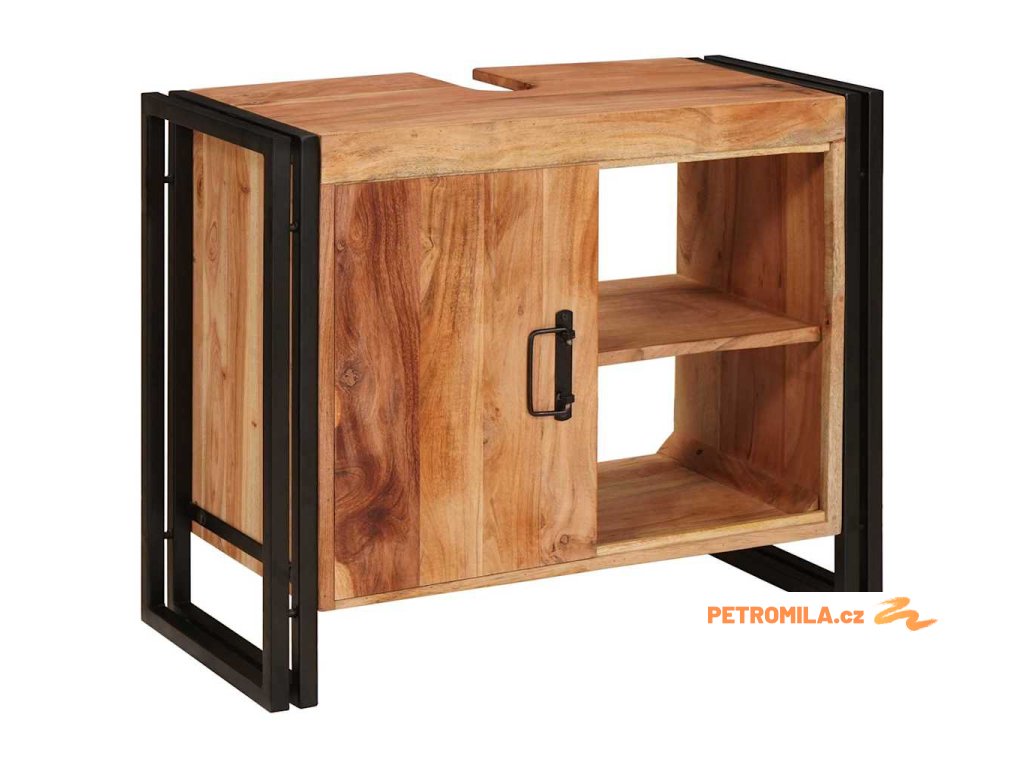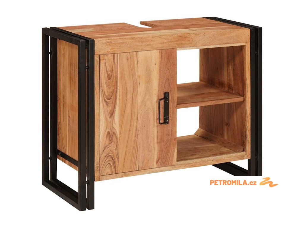 Skříňka pod umyvadlo se dveřmi Masivní akáciové dřevo a železo