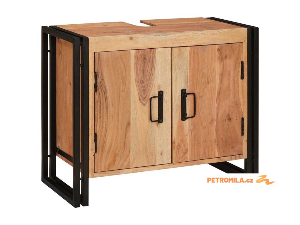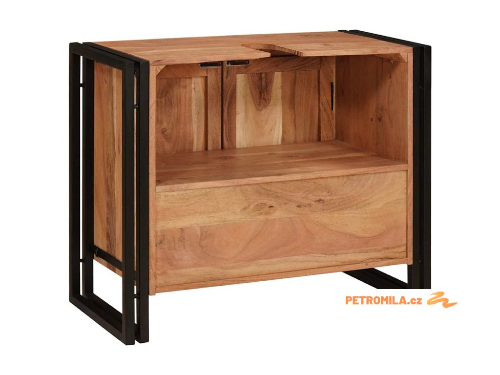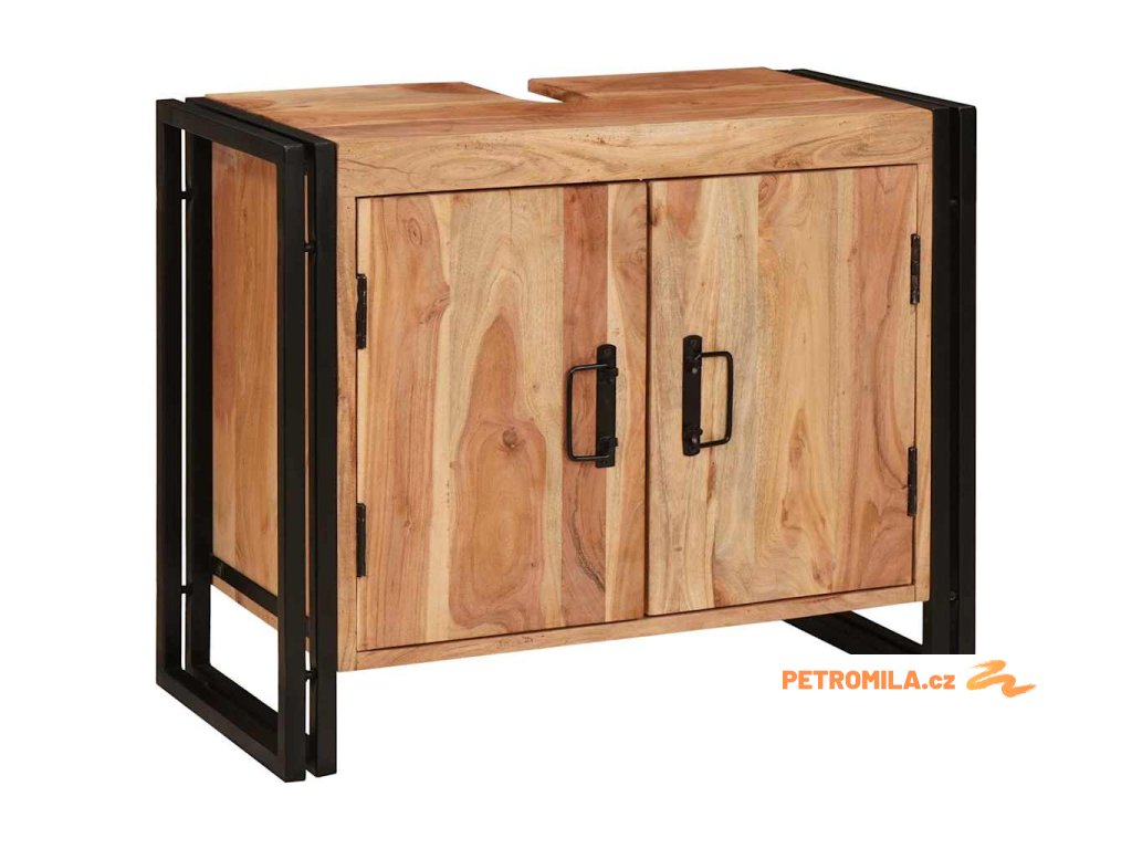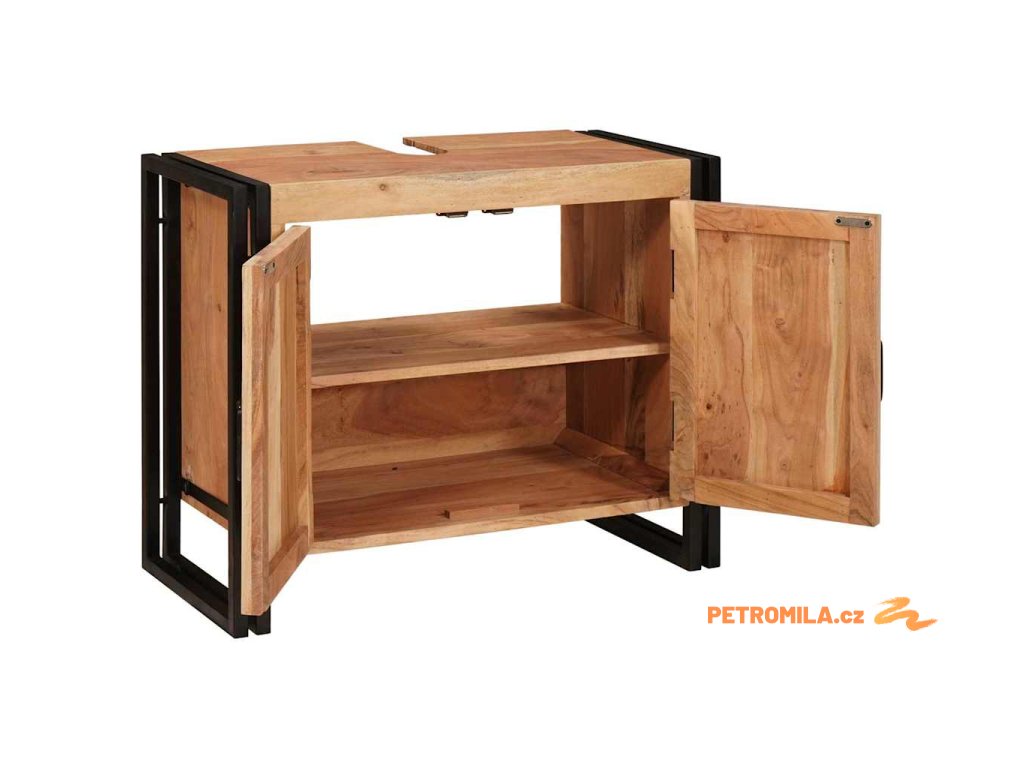 Skříňka pod umyvadlo se dveřmi Masivní akáciové dřevo a železo