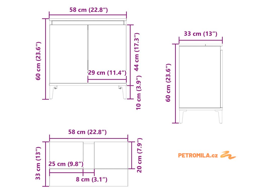 - Rozměry: 58 x 33 x 60 cm (Š x H x V)