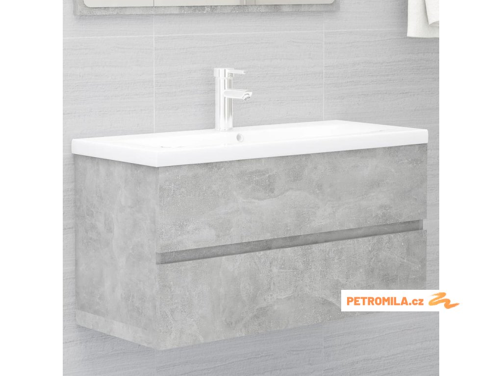 Skříňka se zápustným umyvadlem betonově šedá kompozitní dřevo