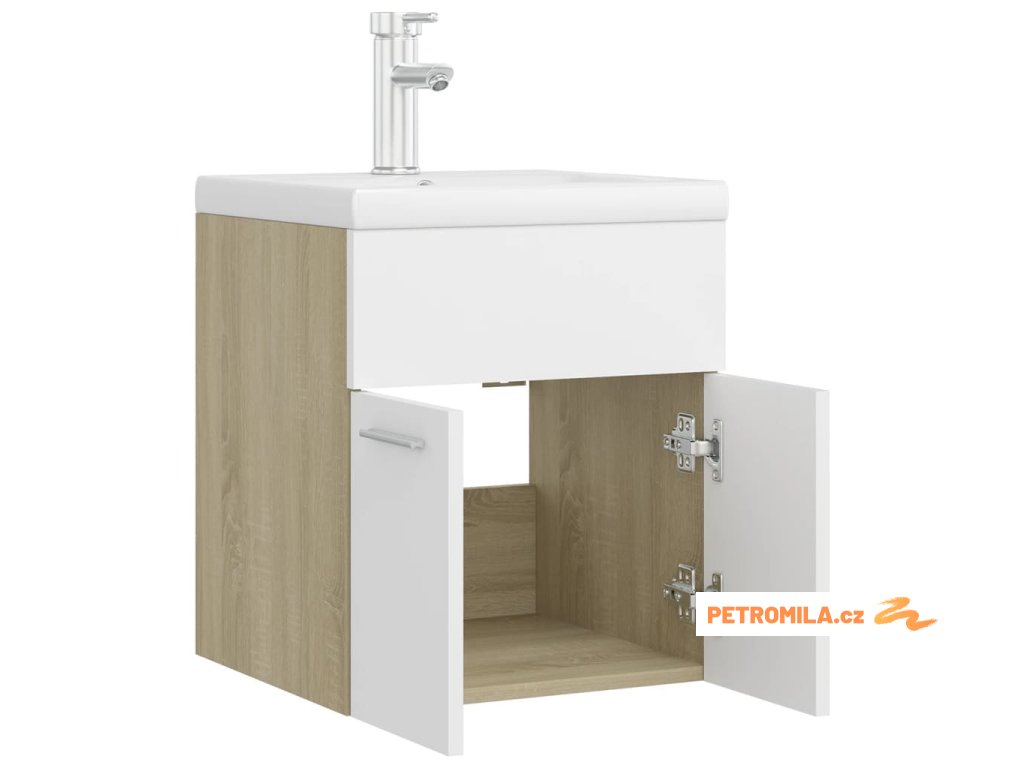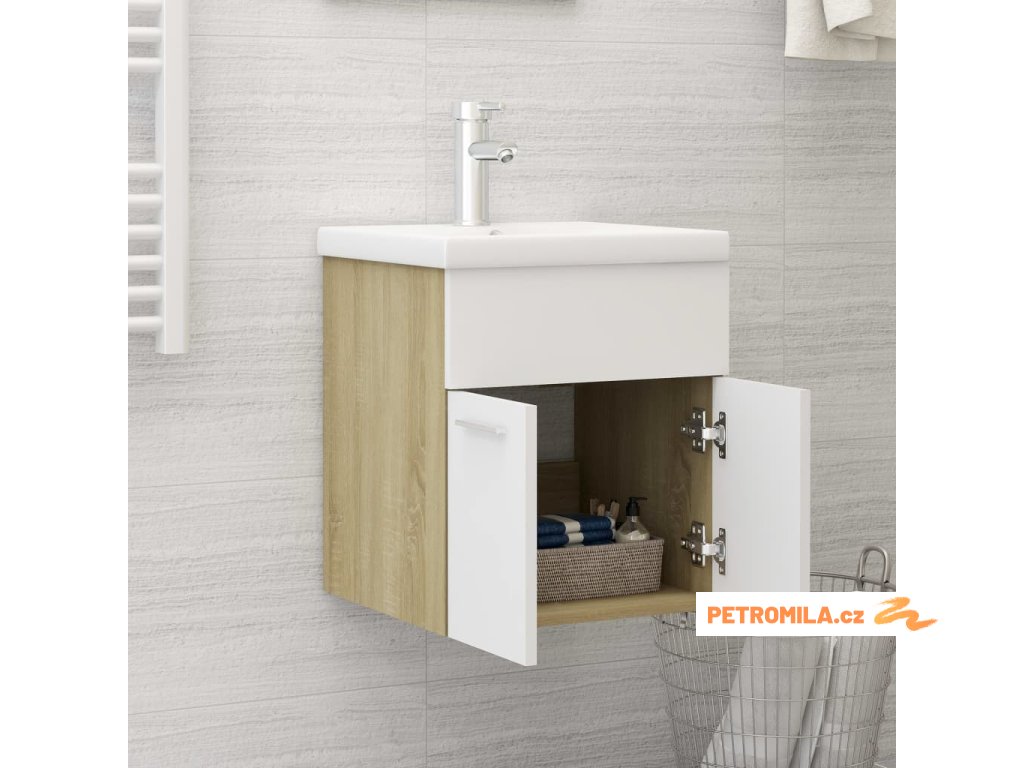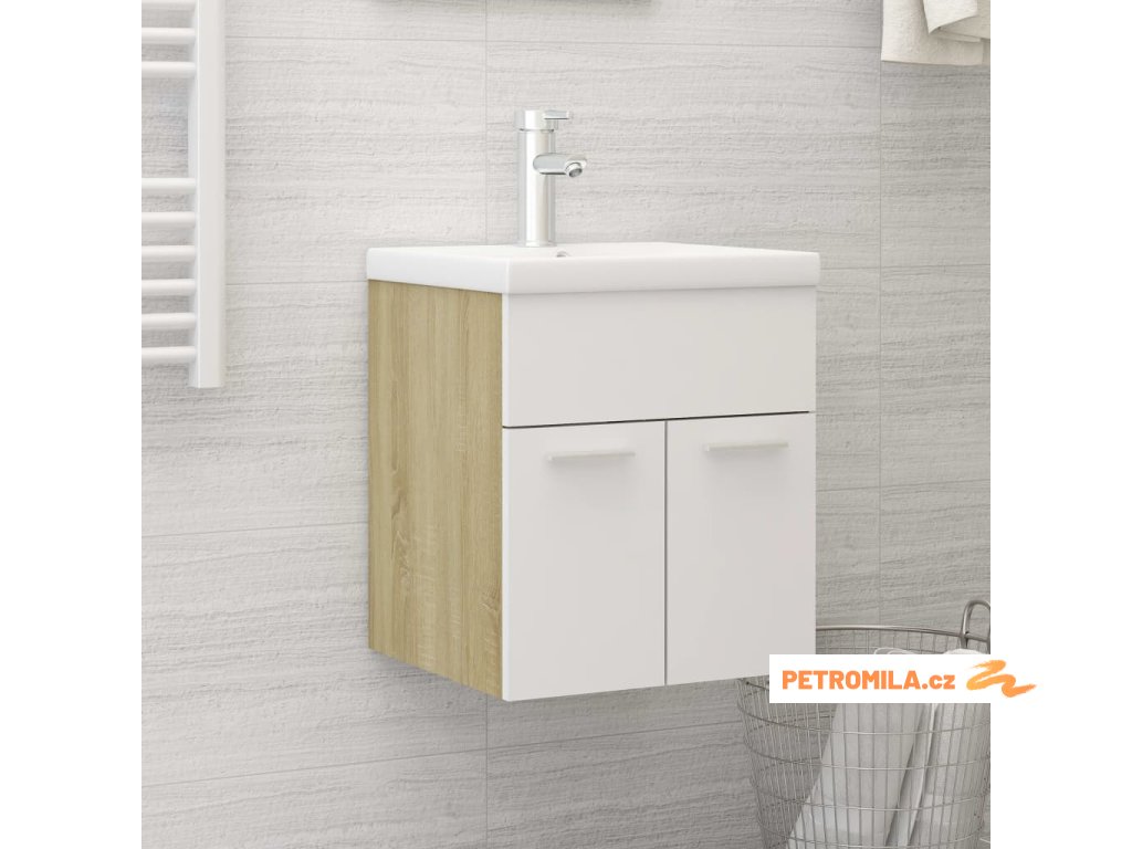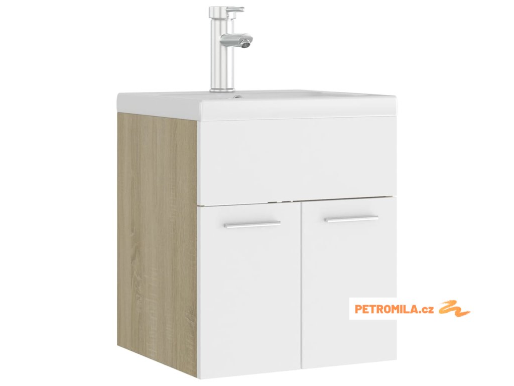 Skříňka se zápustným umyvadlem bílá a dub sonoma kompozit