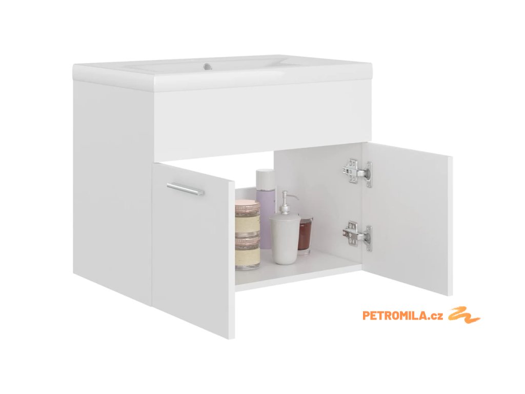 Skříňka je zhotovená z desek, což jí zaručuje výtečnou stabilitu a pevnost. Za dvoukřídlými dvířky najdete 1 přihrádku, která vám poskytne spoustu místa k uložení vašich věcí. Dokonale se vejde pod umyvadlo a nabídne vám šikovné úložné řešení do koupelny. Keramické umyvadlo neslouží pouze jako hygienická nádoba pro každodenní použití – hraje také významnou dekorativní roli. Svým trendovým a moderním designem navíc krásně doplní každý styl zařízení. Součástí je i přepad, který umožňuje odtékání vody v případě, že se umyvadlo příliš přeplní. Glazovaný povrch mu dodává novodobý, elegantní vzhled. Skříňku i umyvadlo snadno očistíte navlhčeným hadříkem.