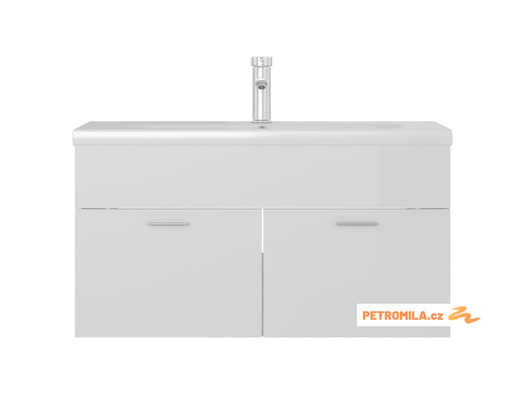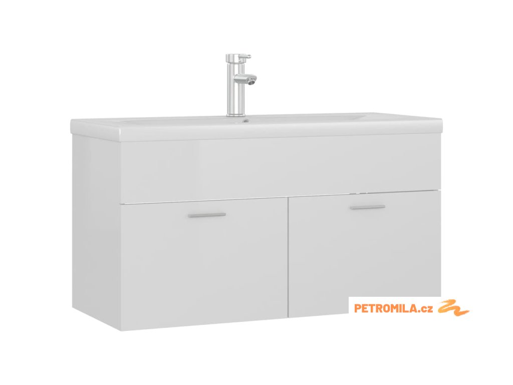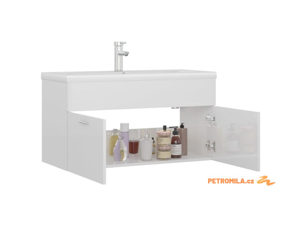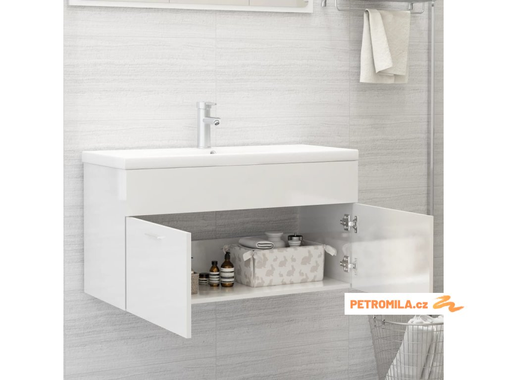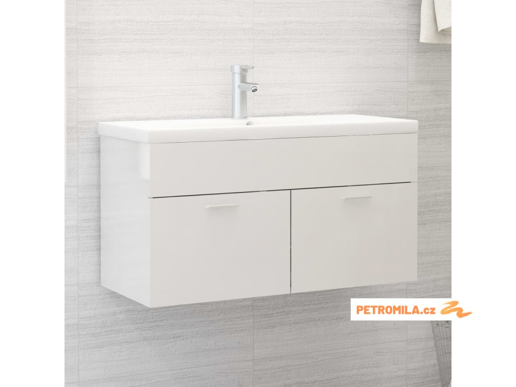 Skříňka se zápustným umyvadlem bílá lesklá kompozitní dřevo