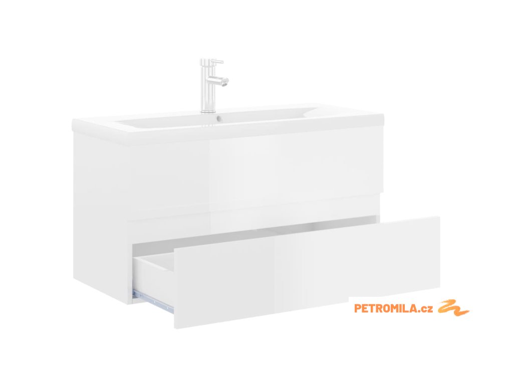 Skříňka se zápustným umyvadlem bílá lesklá kompozitní dřevo