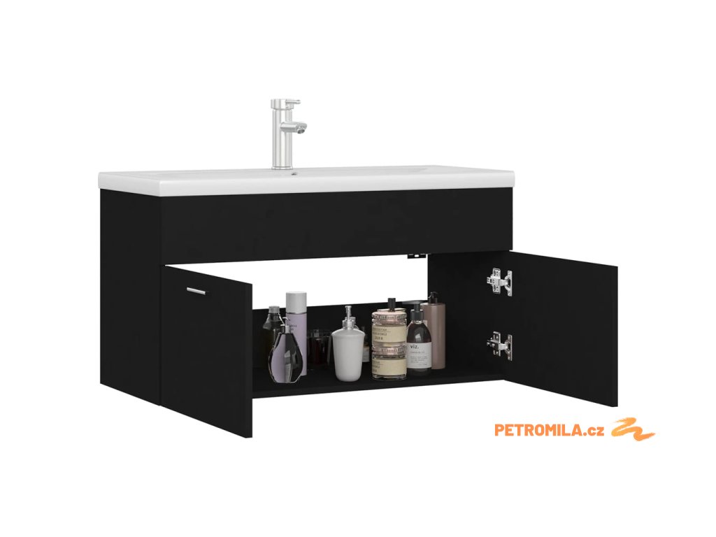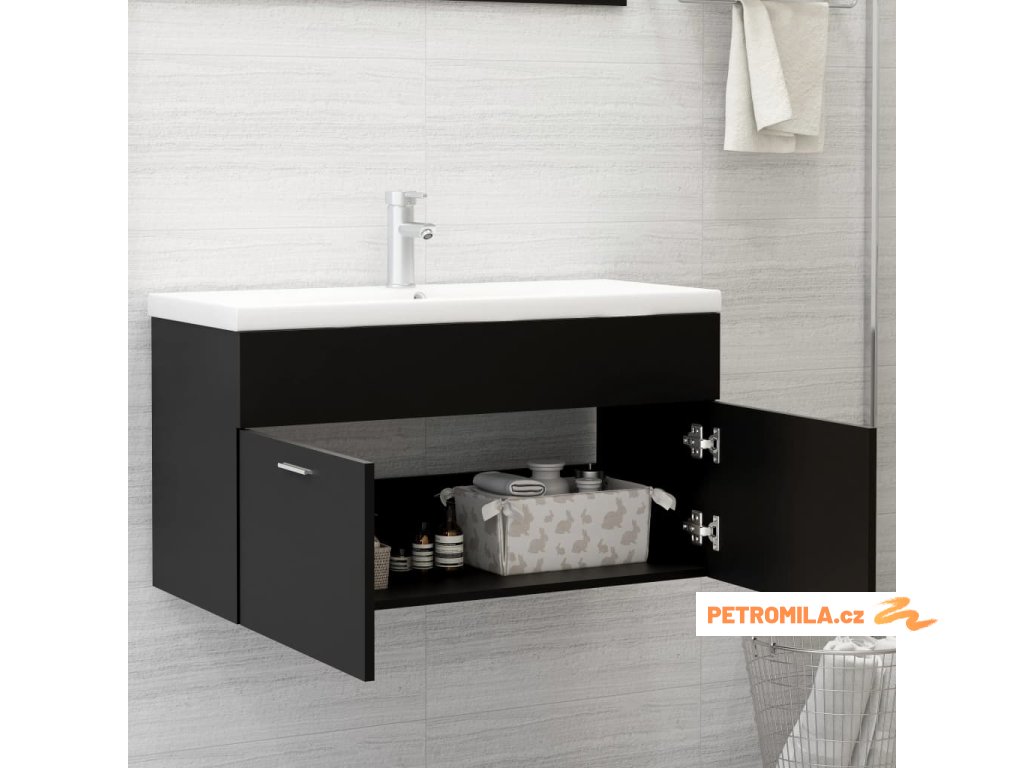 Skříňka se zápustným umyvadlem černá kompozitní dřevo
