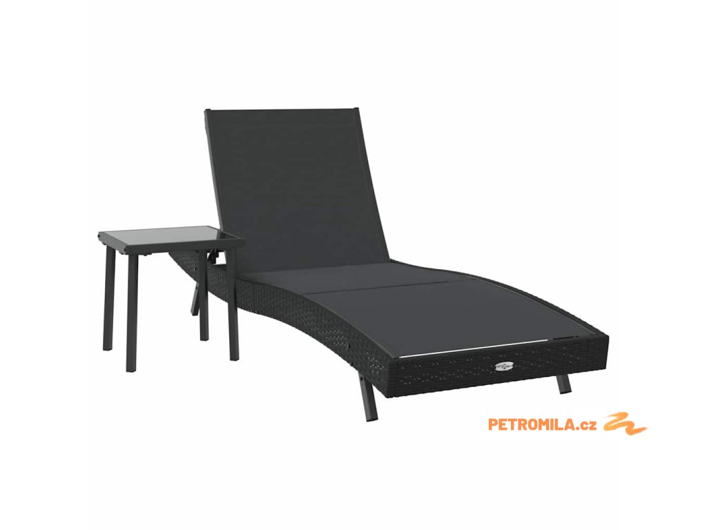 Sluneční lehátko se stolem 2 pcs Černá 40 x 40 x 40.5 cm