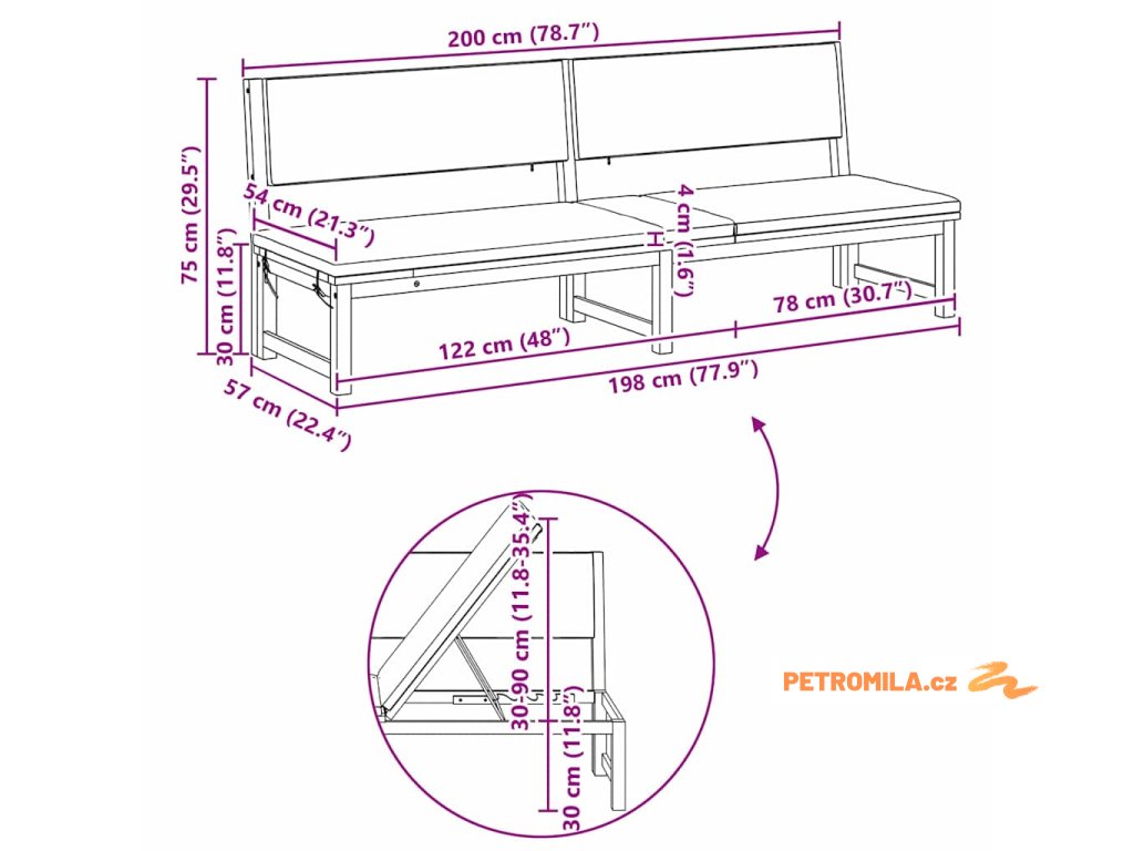 - Celkové rozměry: 200 x 57 x 75 cm (D x Š x V)
