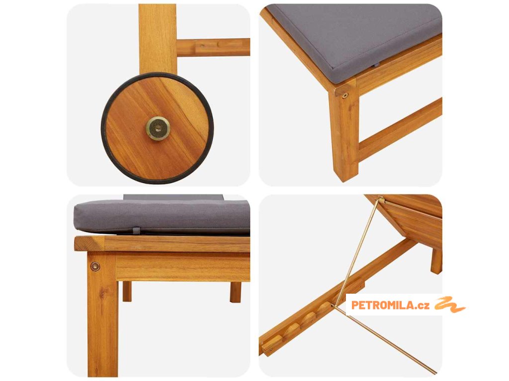 - Materiály: Vyrobeno z masivního akáciového dřeva, tohle lehátko je silné a spolehlivé. Akácie je odolná a zvládne jakékoli počasí, což je ideální pro venkovní nábytek. Nejenže dělá lehátko pevné, ale přidává i přírodní kouzlo do zahrady nebo na terasu. Dřevo má krásnou texturu, která se skvěle hodí k přírodě.