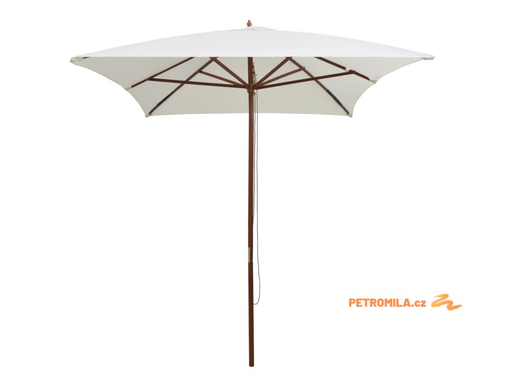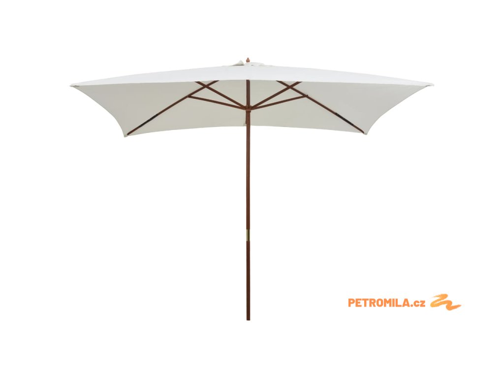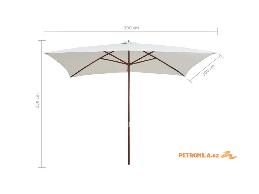 Slunečník 200 x 300 cm s dřevěnou tyčí krémově bílý