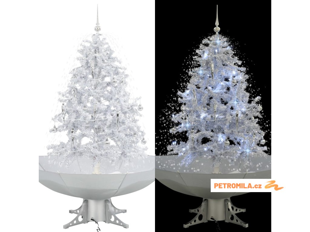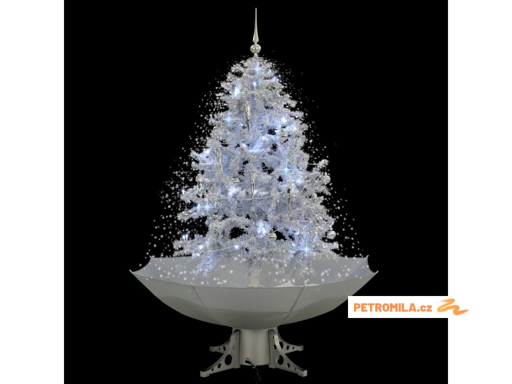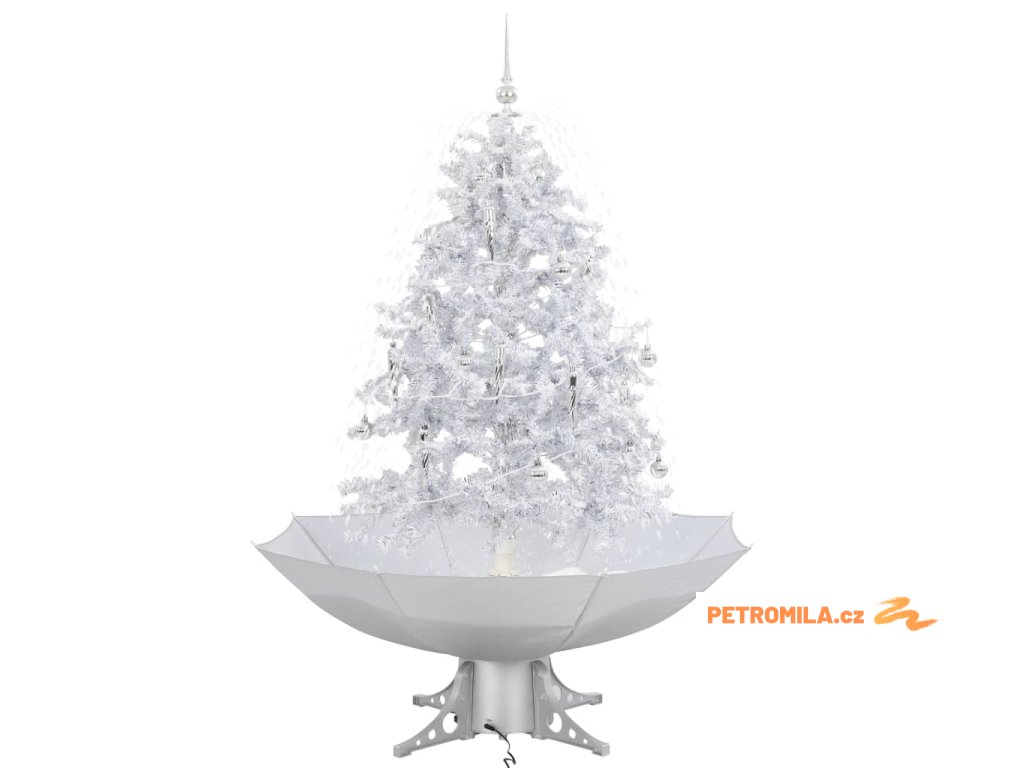 Sněžící vánoční stromeček s deštníkovým stojanem bílý 140 cm