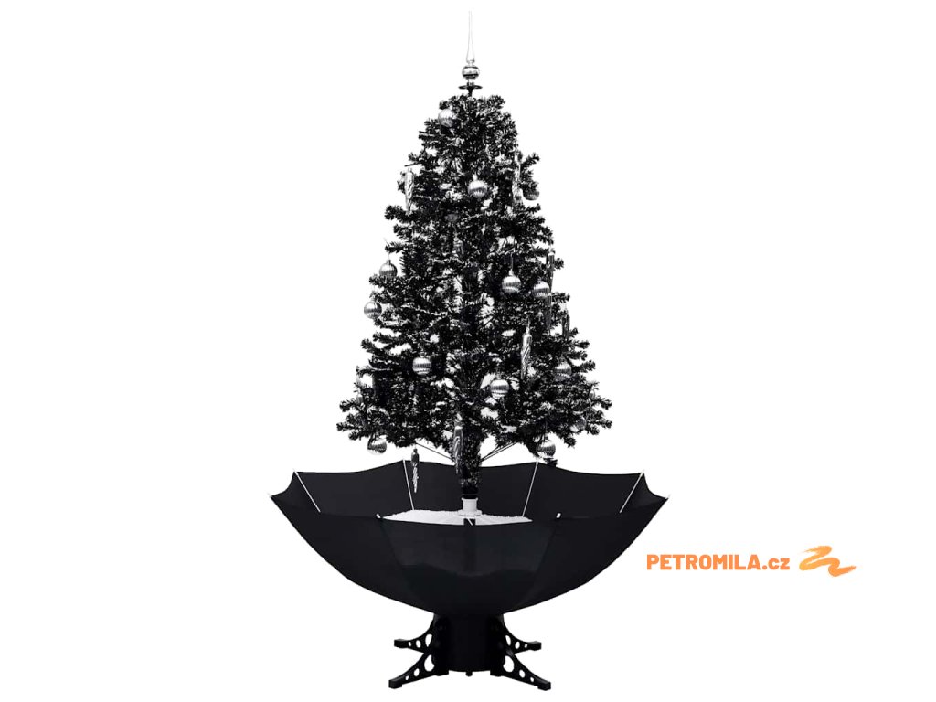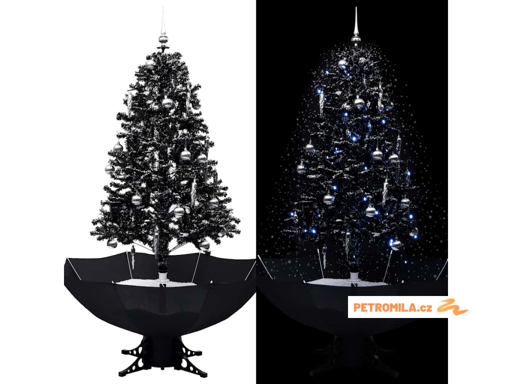 Sněžící vánoční stromek s deštníkovým stojanem černý 170 cm PVC