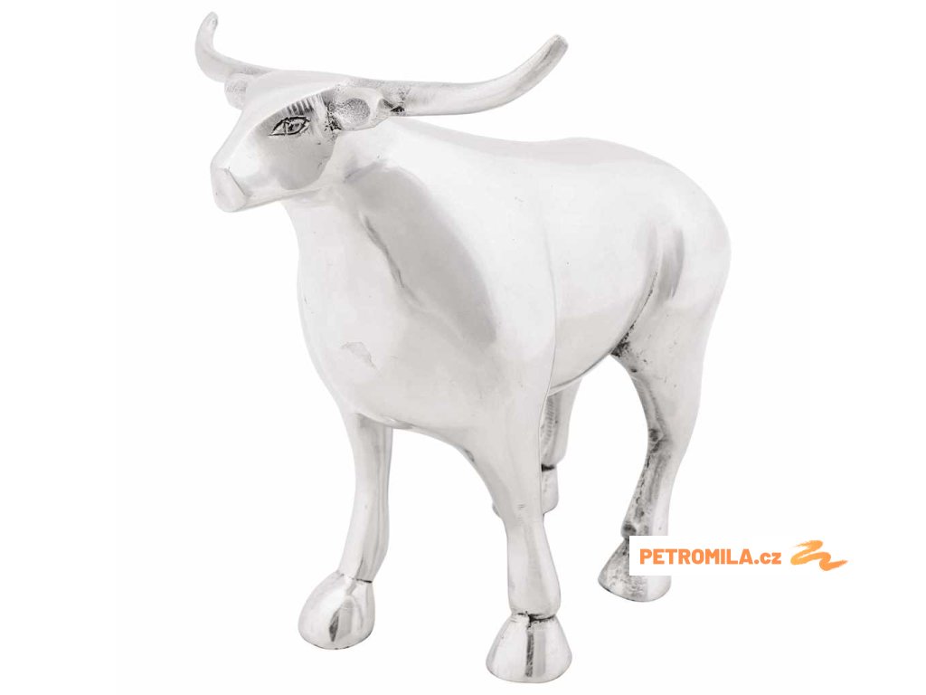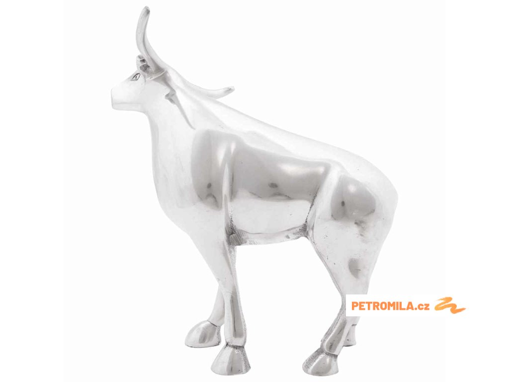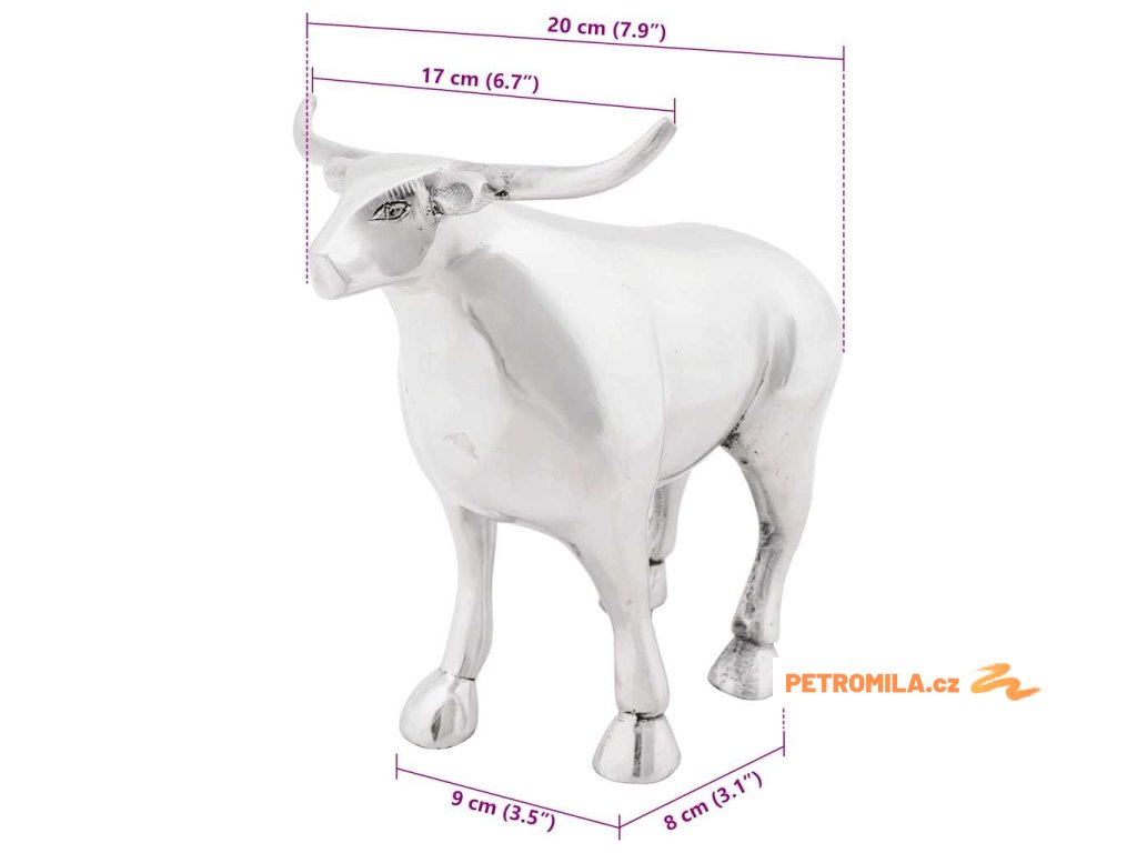 Socha býka Stříbrná 20 x 17 x 23 cm Hliník