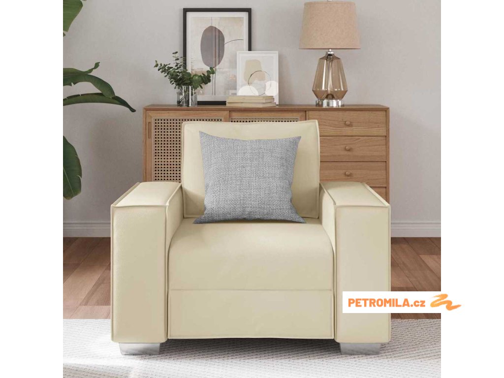 Sofa křeslo 59 cm s polštářem Krémová Umělá kůže