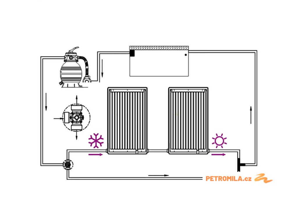 Tento solární ohřev bazénu je ideální pro nadzemní bazény. Bazénovou vodu ohřívá solární energií.