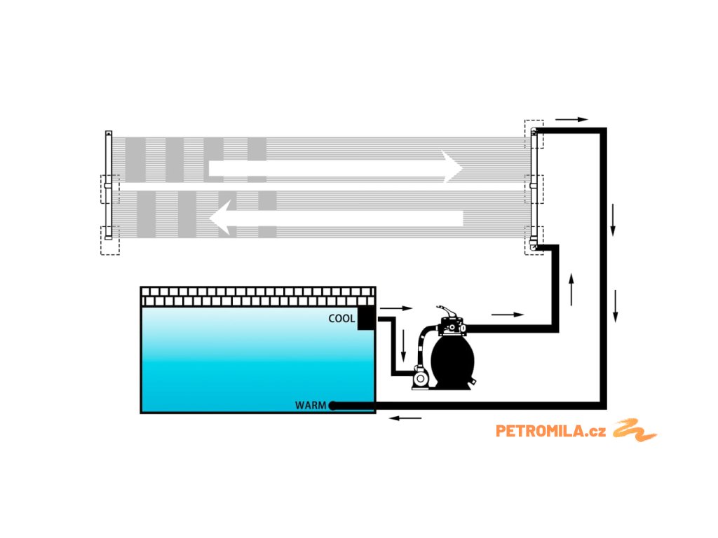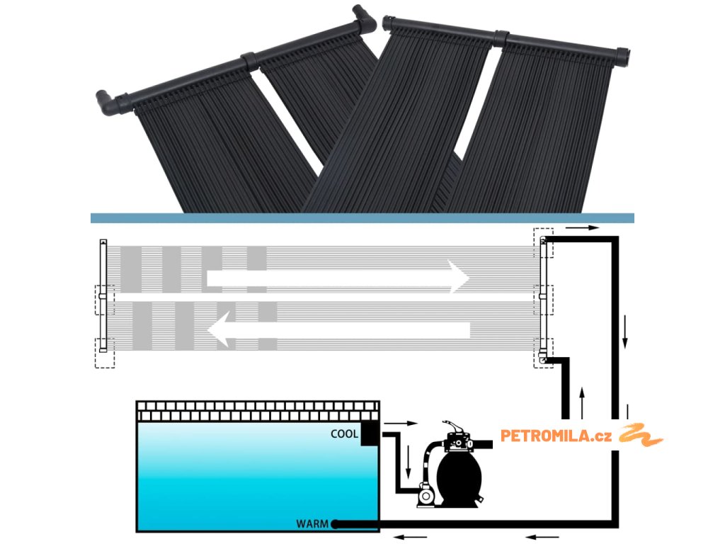 Tato sada solárního ohřívače bazénu absorbuje sluneční paprsky, přeměňuje je na teplo, a tím udržuje váš bazén příjemně teplý. Zvyšuje teplotu vody až o 10 stupňů.
