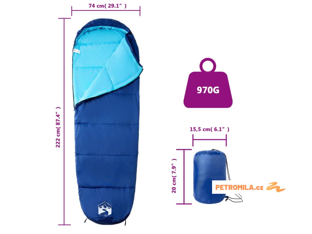 - Rozměry spacího pytle: 222 x 74 cm (D x Š)