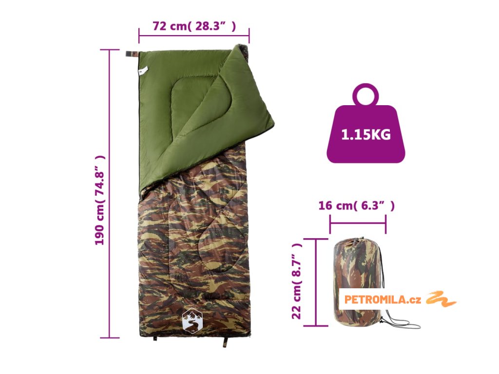 - Rozměry spacího pytle: 190 x 72 cm (D x Š)