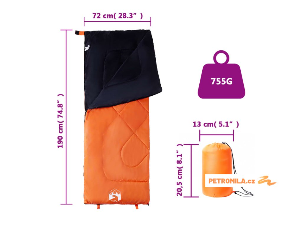 - Rozměry spacího pytle: 190 x 72 cm (D x Š)