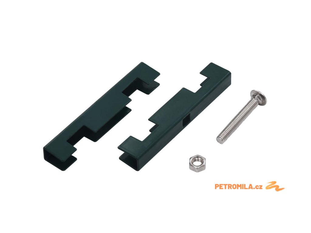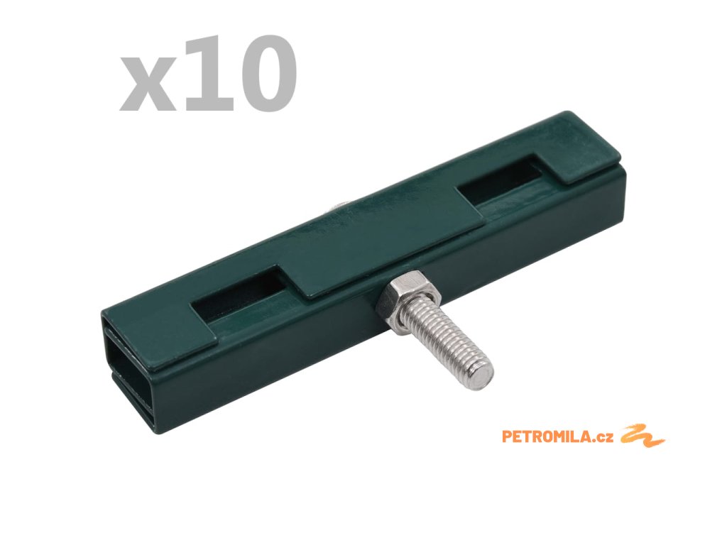 Spona na zahradní pletivo je vyrobená z pozinkované oceli, která zajišťuje dlouhodobou životnost. Balení obsahuje 10 sad v jedné krabici, každá sada se skládá ze 2 spon tvaru U, 1 vratového šroubu a 1 rohatkové matice.