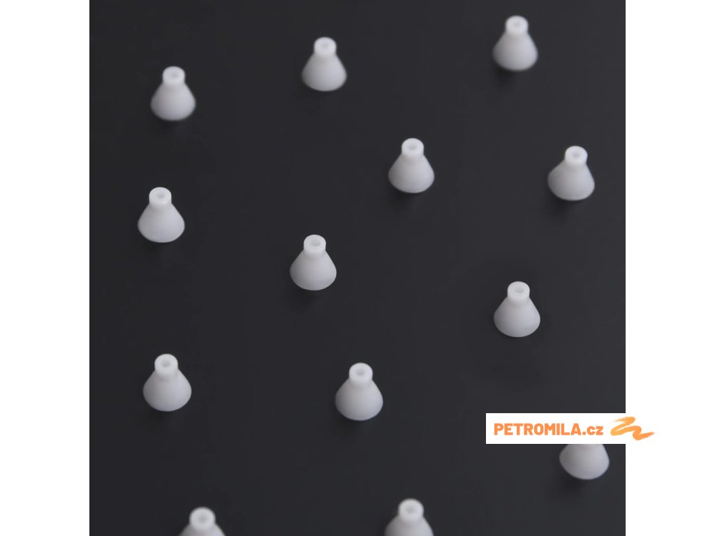 Silikonové trysky zajišťují snadné čištění vodního kamene a otočný kloub umožňuje nastavení úhlu proudu sprchy.