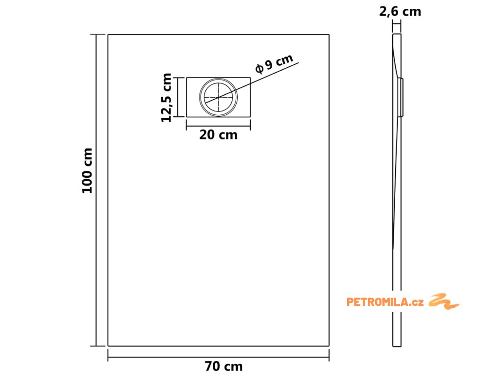 - Velikost podlahového odtoku: 20 x 12,5 cm (Š x V)