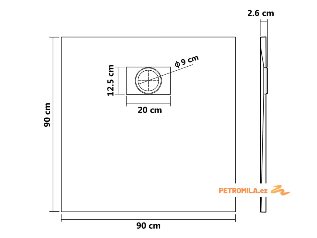 - Rozměry: 90 x 90 x 2,6 cm (Š x H x T)