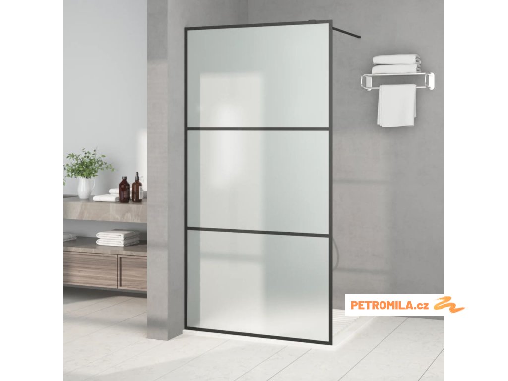 Sprchová zástěna walk-in černá 100 x 195 cm mléčné ESG sklo