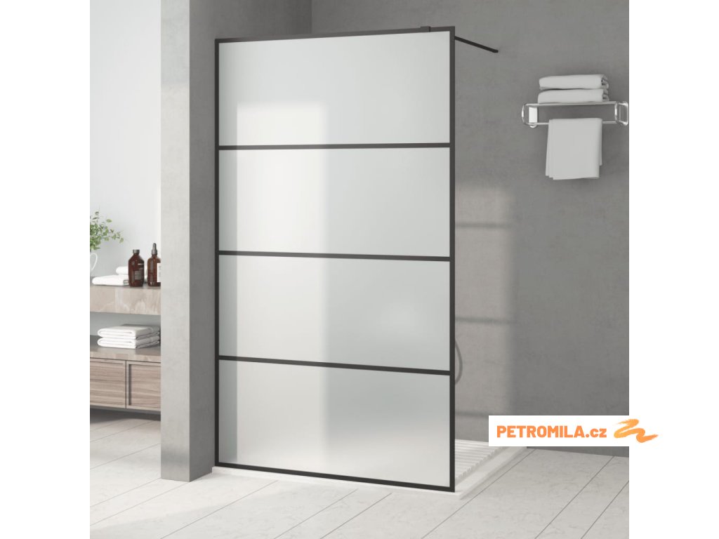 Sprchová zástěna walk-in černá 115 x 195 cm mléčné ESG sklo