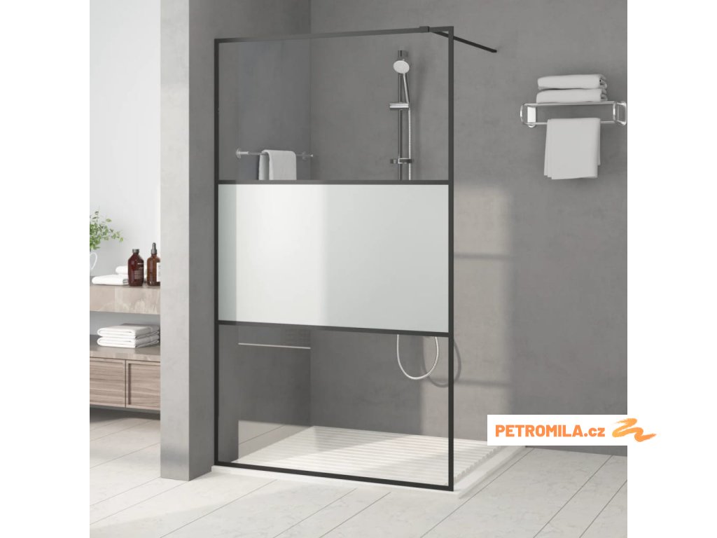 Sprchová zástěna walk-in černá 115x195 cm napůl mléčné ESG sklo