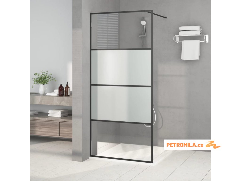 Sprchová zástěna walk-in černá 90x195 cm napůl mléčné ESG sklo
