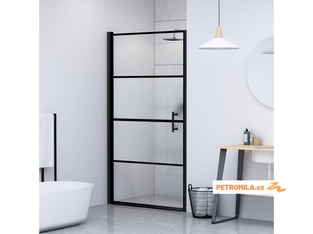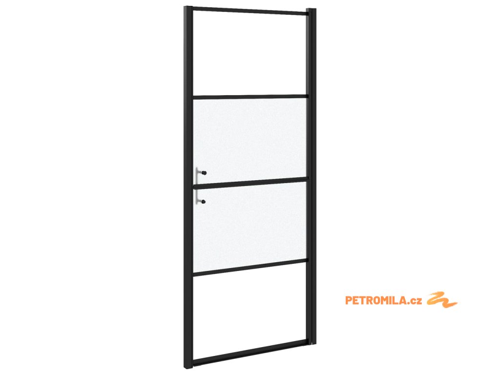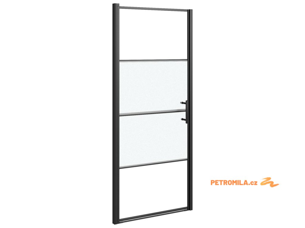 Sprchové dveře 81 x 195 cm napůl mléčné tvrzené sklo černé