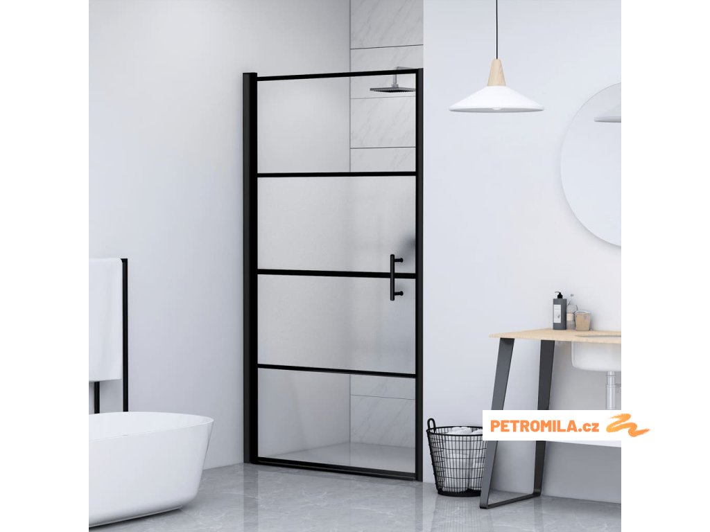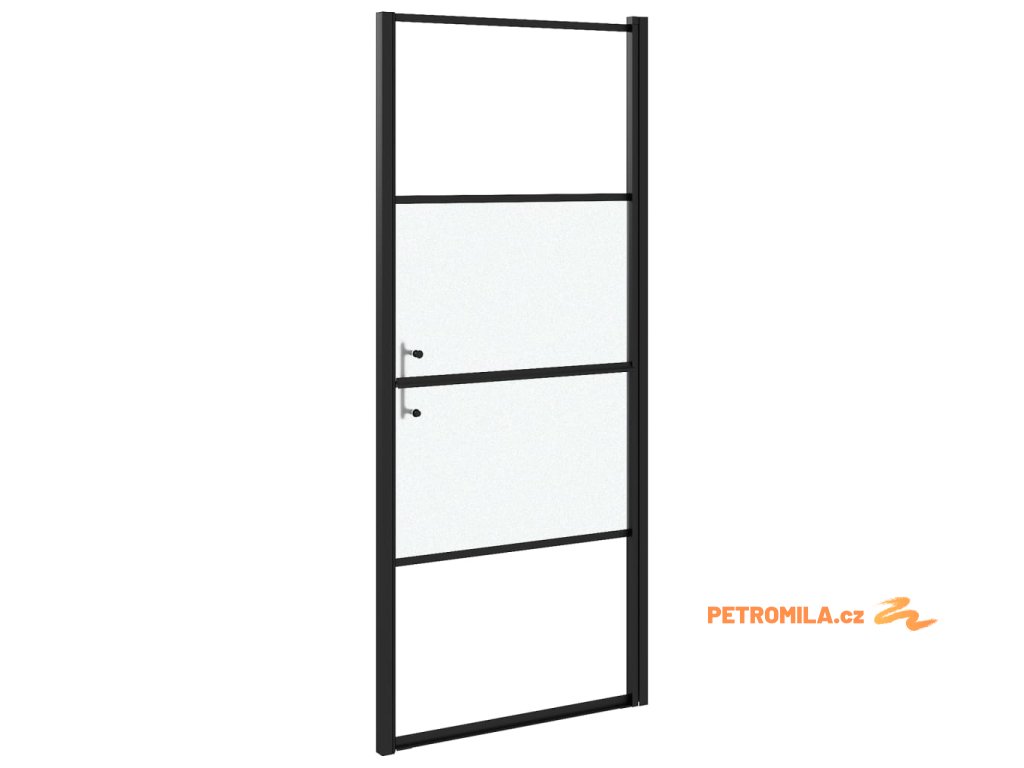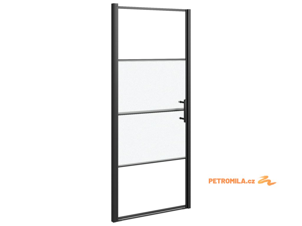Sprchové dveře 91 x 195 cm napůl mléčné tvrzené sklo černé