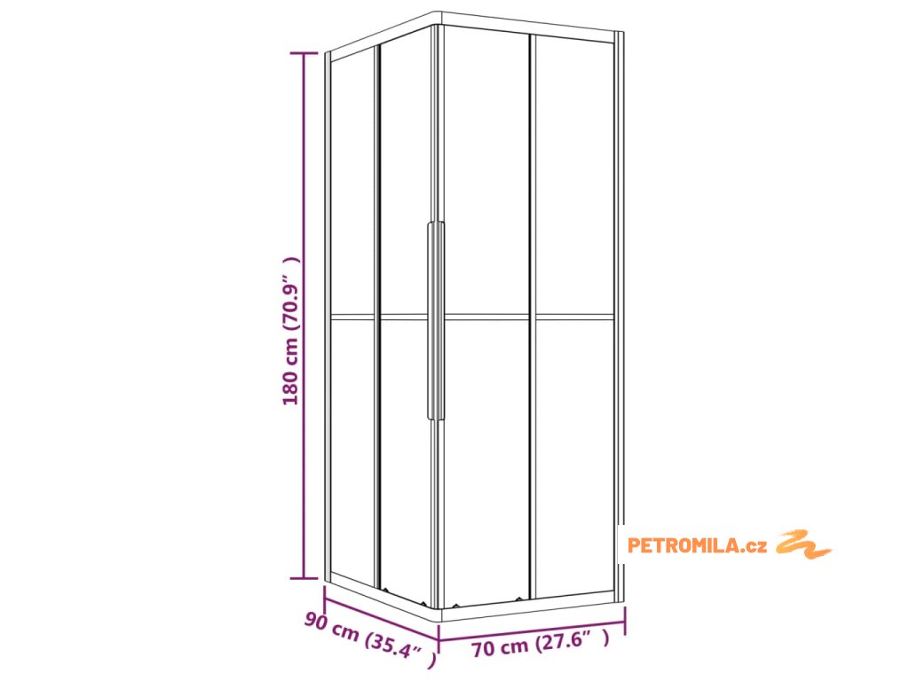 Sprchový kout mléčné ESG 90 x 70 x 180 cm