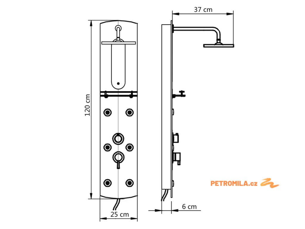 - Funkce: Tropický déšť, 6 hydromasážních trysek, ruční sprcha