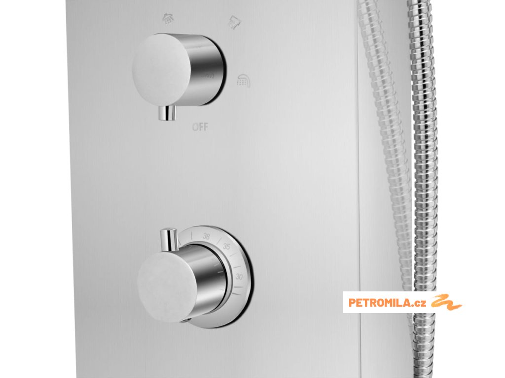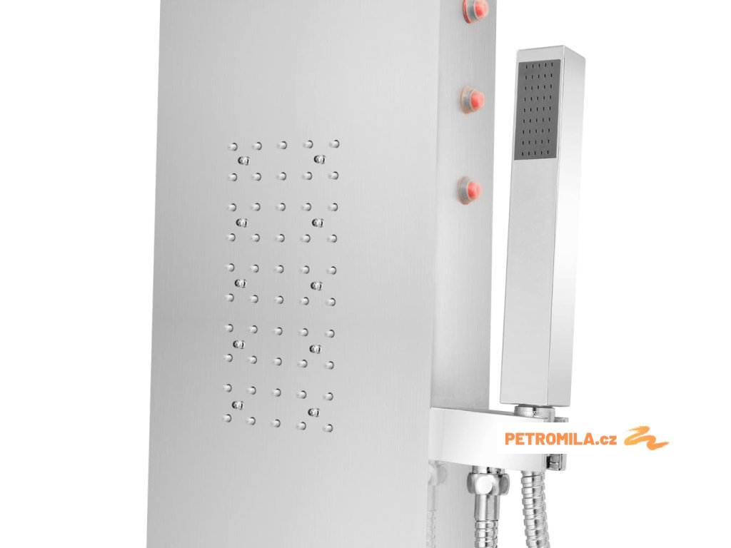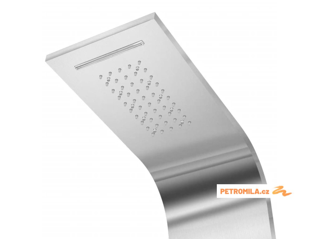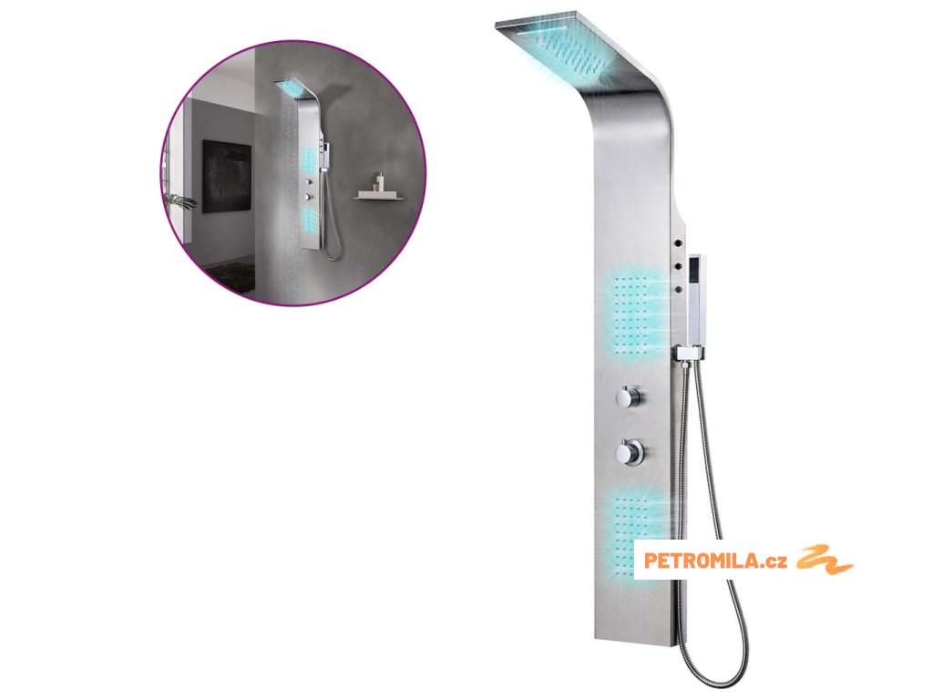 Sprchový panel je vyrobený z odolné nerezové oceli s kartáčovaným povrchem a má krásný zaoblený design. Má čtyři funkce: tropický déšť, vodopád, hydromasážní trysky a ruční sprcha, které lze snadno ovládat prostřednictvím přepínacího regulátoru. LED světla si můžete zapnout či vypnout dle vaší momentální nálady. Teplota vody se reguluje pomocí knoflíku termostatu.