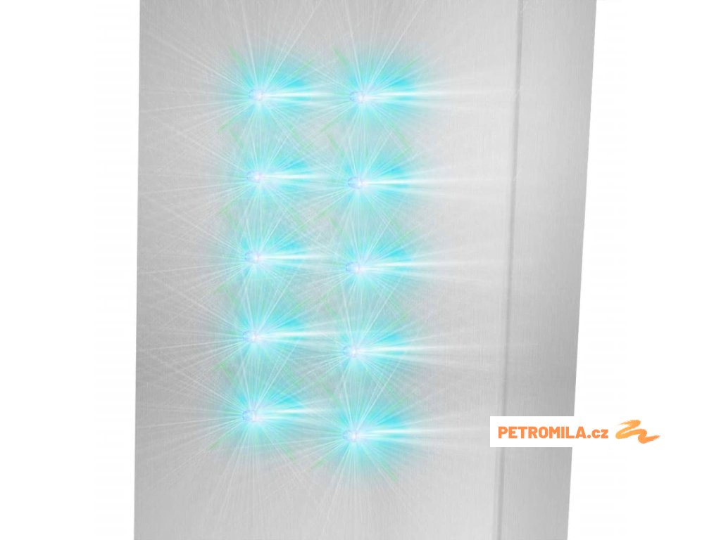 - 30 LED světel: 10 na dešťové hlavici a 10 na každém setu hydromasážních trysek