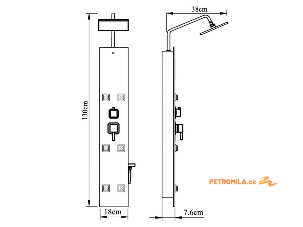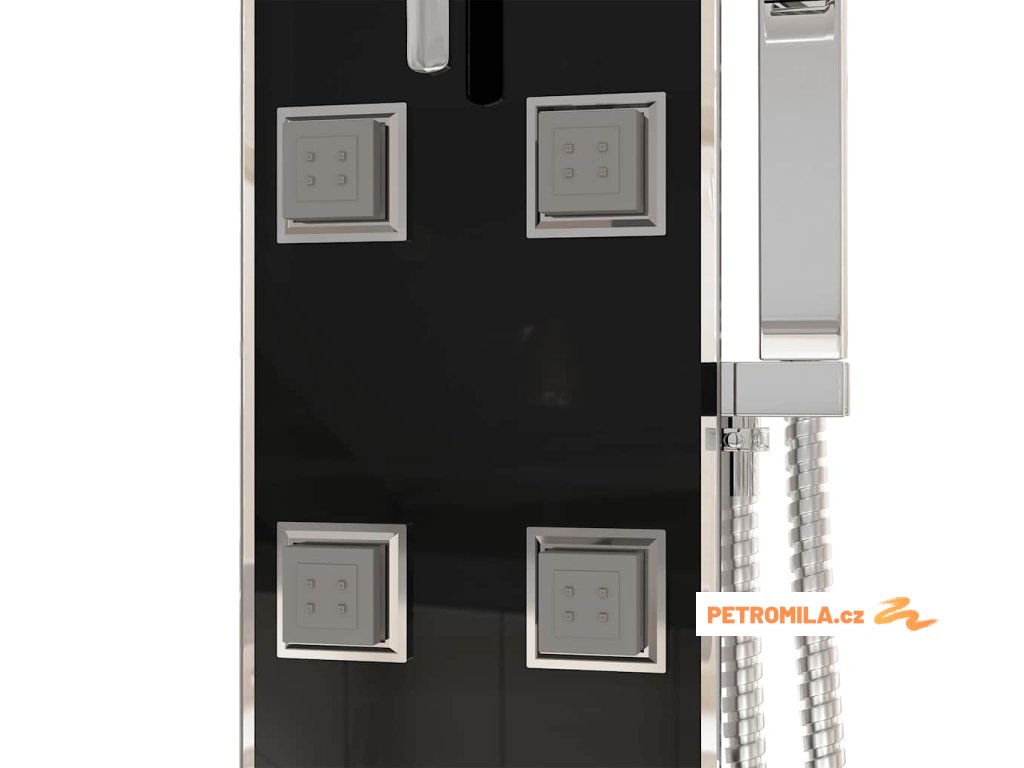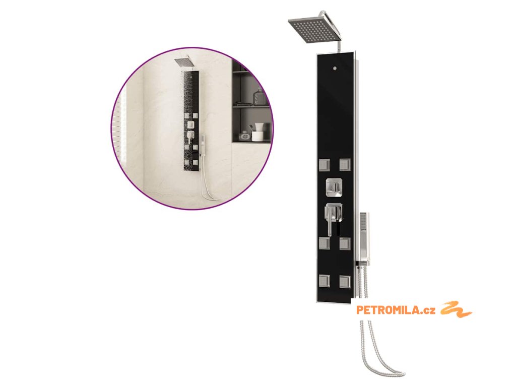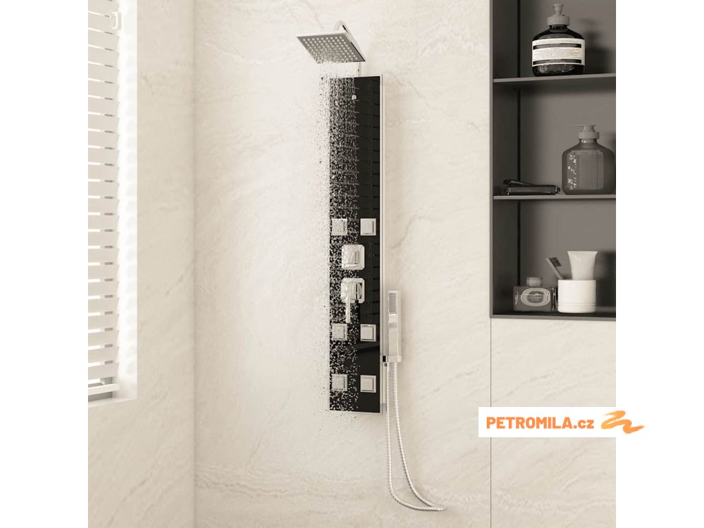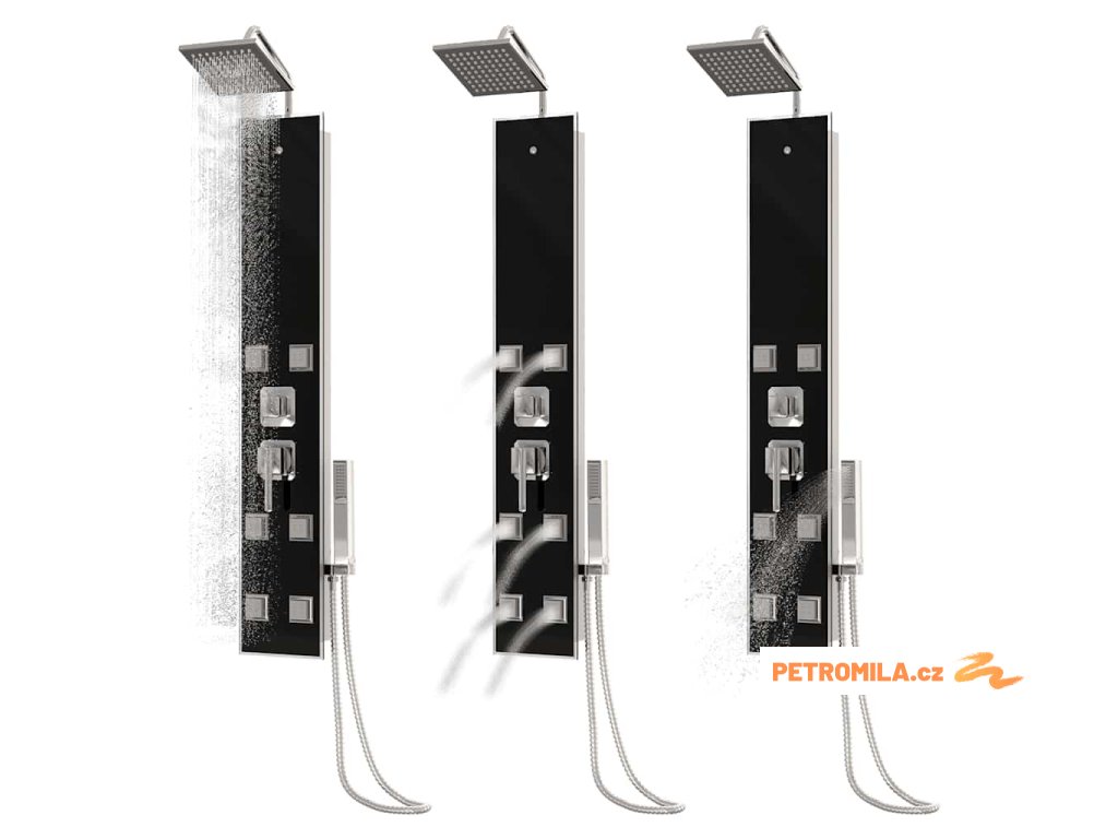 Sprchový panel je vyroben z nerezové oceli a tvrzeného skla. Tvrzené sklo se vyrábí řízeným tepelným nebo chemickým zpracováním, je tedy mnohem odolnější a bezpečnější než běžné sklo. Panel nabízí tři funkce způsobu sprchování: tropický déšť, hydromasážní trysky a ruční sprchu, mezi nimiž se dá snadno přepínat. Silikonové trysky jsou odolné vůči usazování vodního kamene.