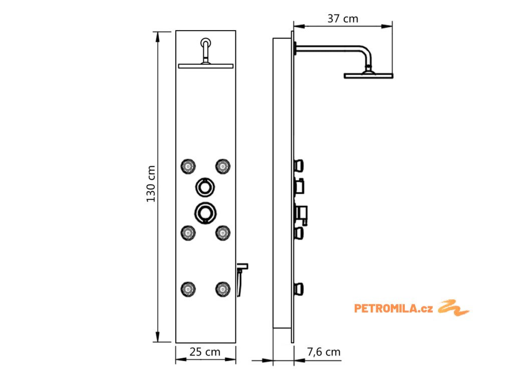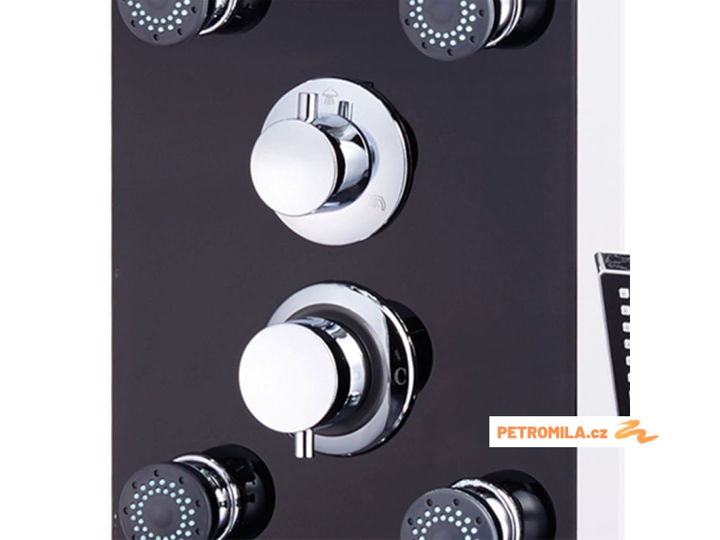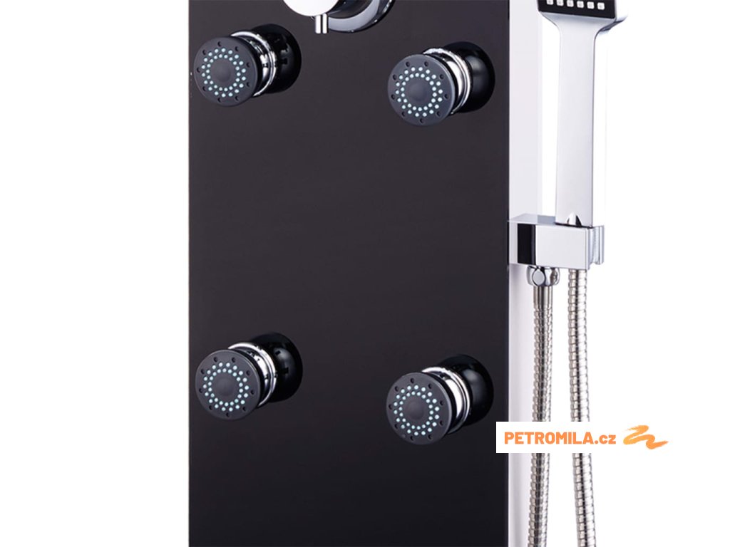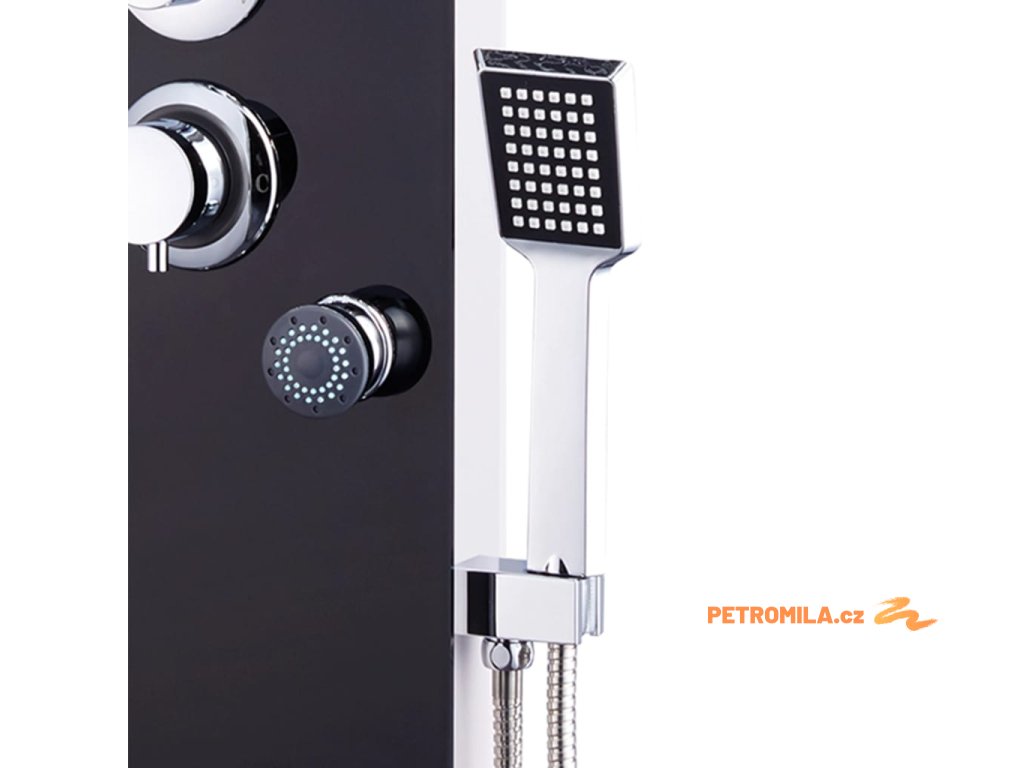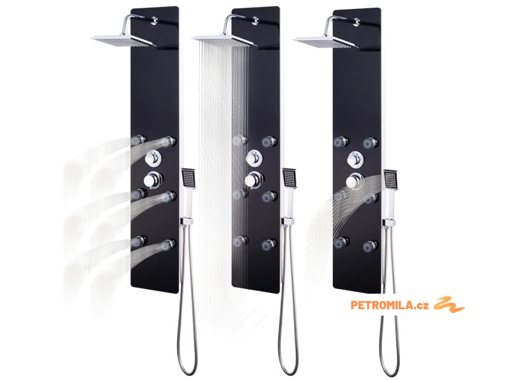Sprchový panel je vyroben z nerezové oceli a tvrzeného skla. Tvrzené sklo se vyrábí řízeným tepelným nebo chemickým zpracováním, je tedy mnohem odolnější a bezpečnější než běžné sklo. Panel nabízí tři funkce způsobu sprchování: tropický déšť, hydromasážní trysky a ruční sprchu, mezi nimiž se dá snadno přepínat. Silikonové trysky jsou odolné vůči usazování vodního kamene. Dopřejte si tu pravou relaxaci při každém sprchování a potěšte se krásou moderního stylu tohoto sprchového panelu! Montáž je snadná.