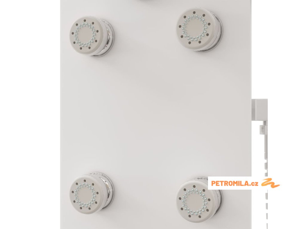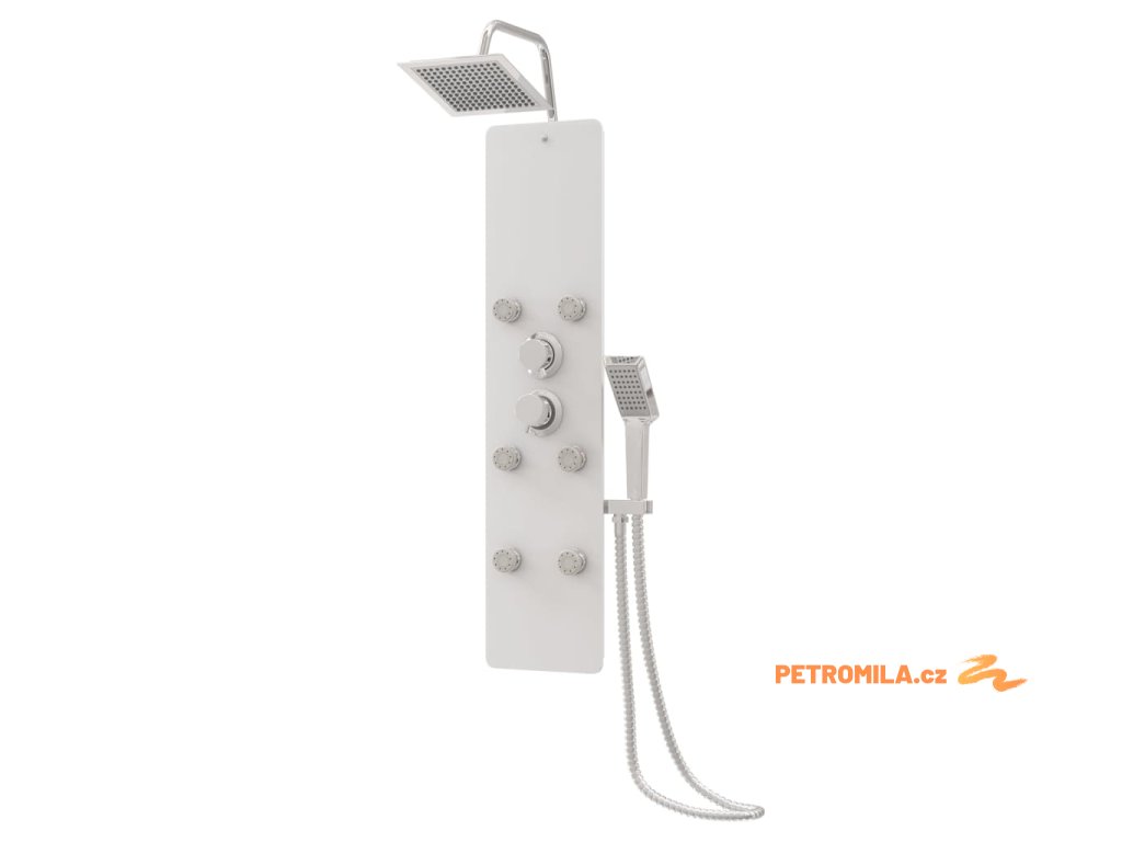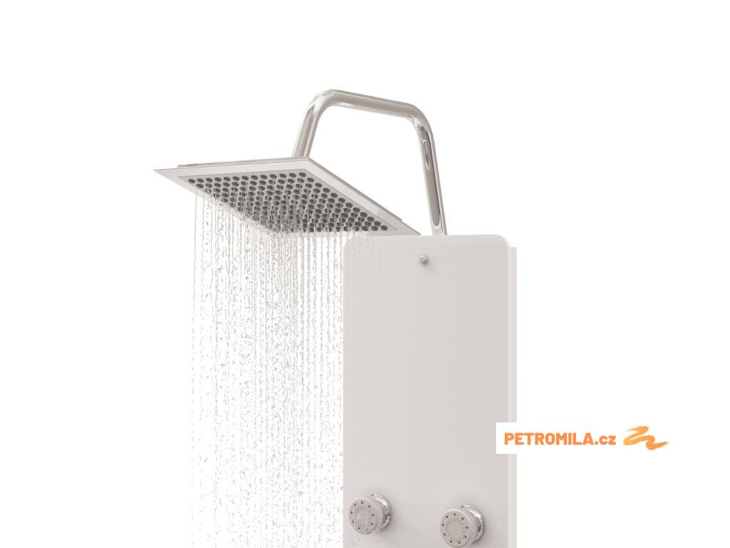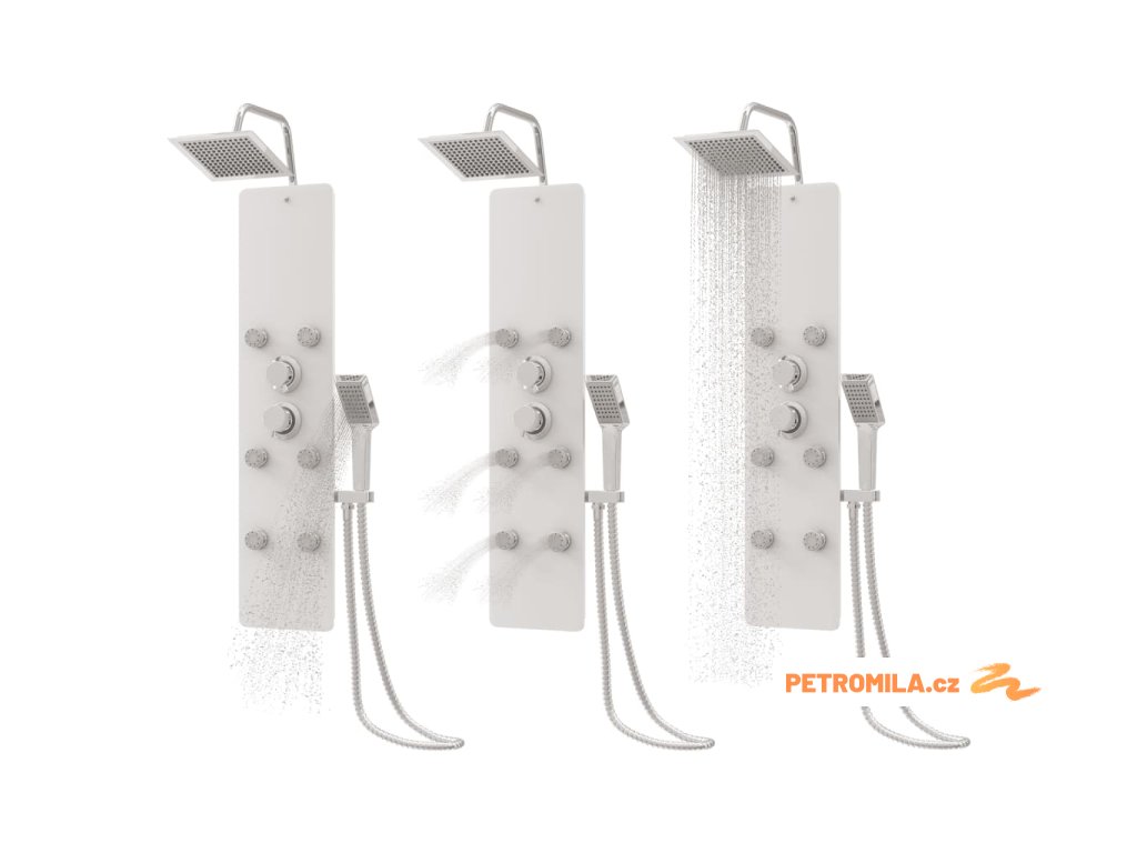 Sprchový panel je vyroben z nerezové oceli a tvrzeného skla. Tvrzené sklo se vyrábí řízeným tepelným nebo chemickým zpracováním, je tedy mnohem odolnější a bezpečnější než běžné sklo. Panel nabízí tři funkce způsobu sprchování: tropický déšť, hydromasážní trysky a ruční sprchu, mezi nimiž se dá snadno přepínat. Silikonové trysky jsou odolné vůči usazování vodního kamene.