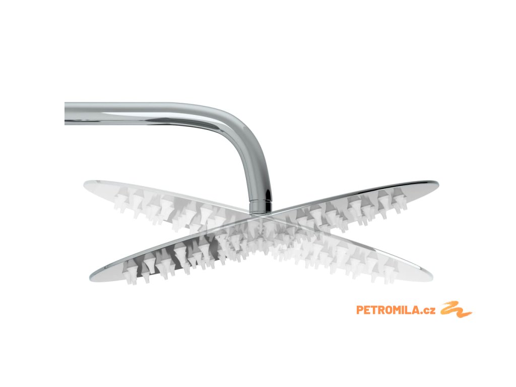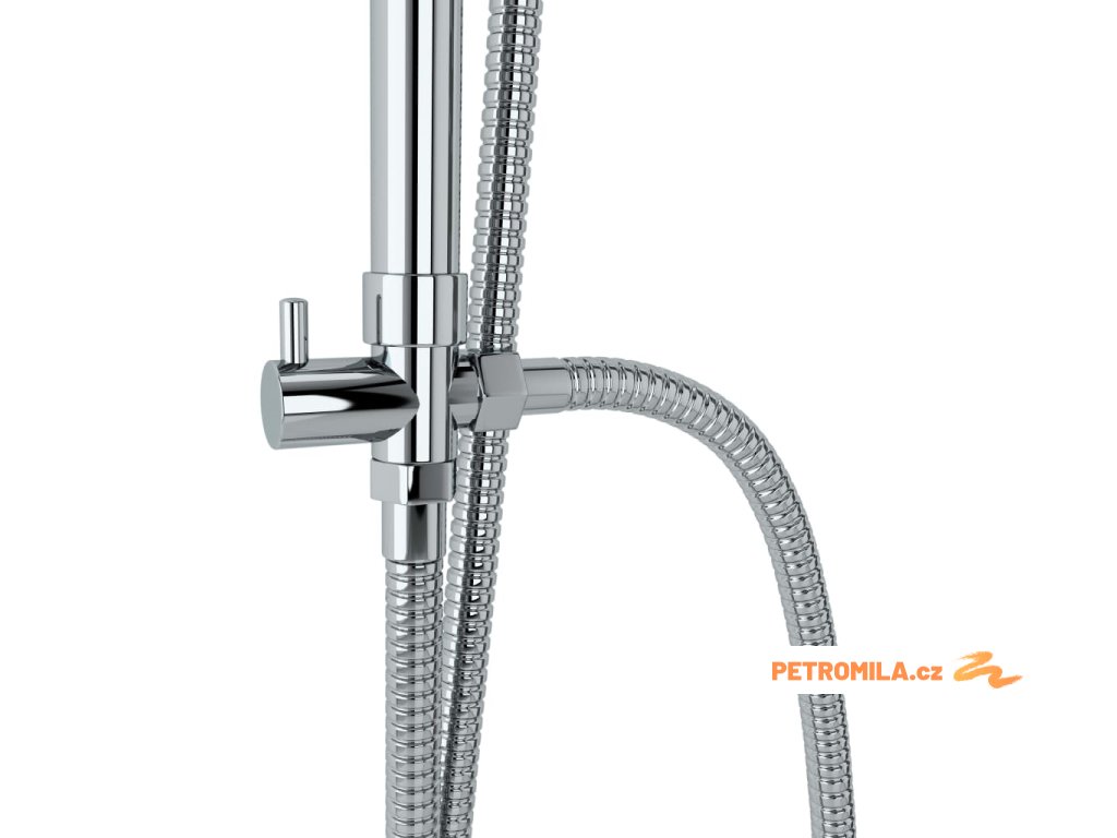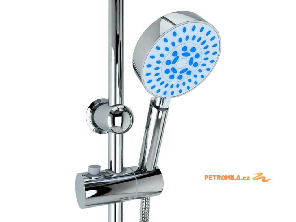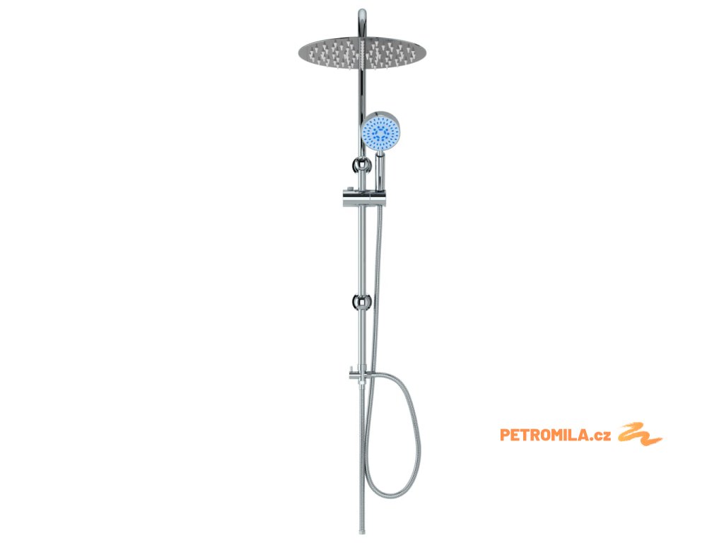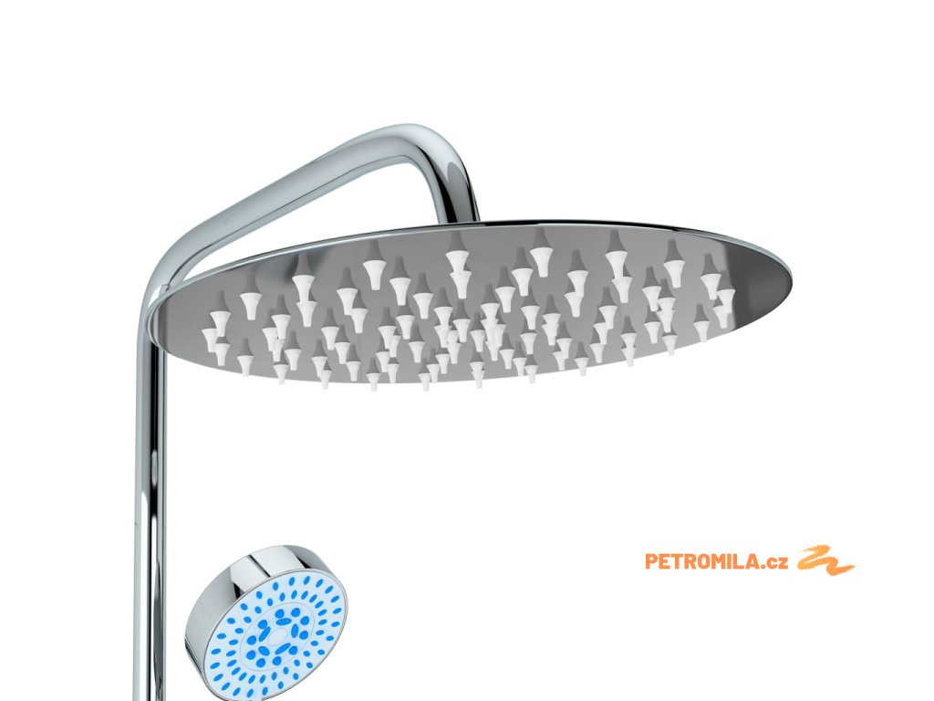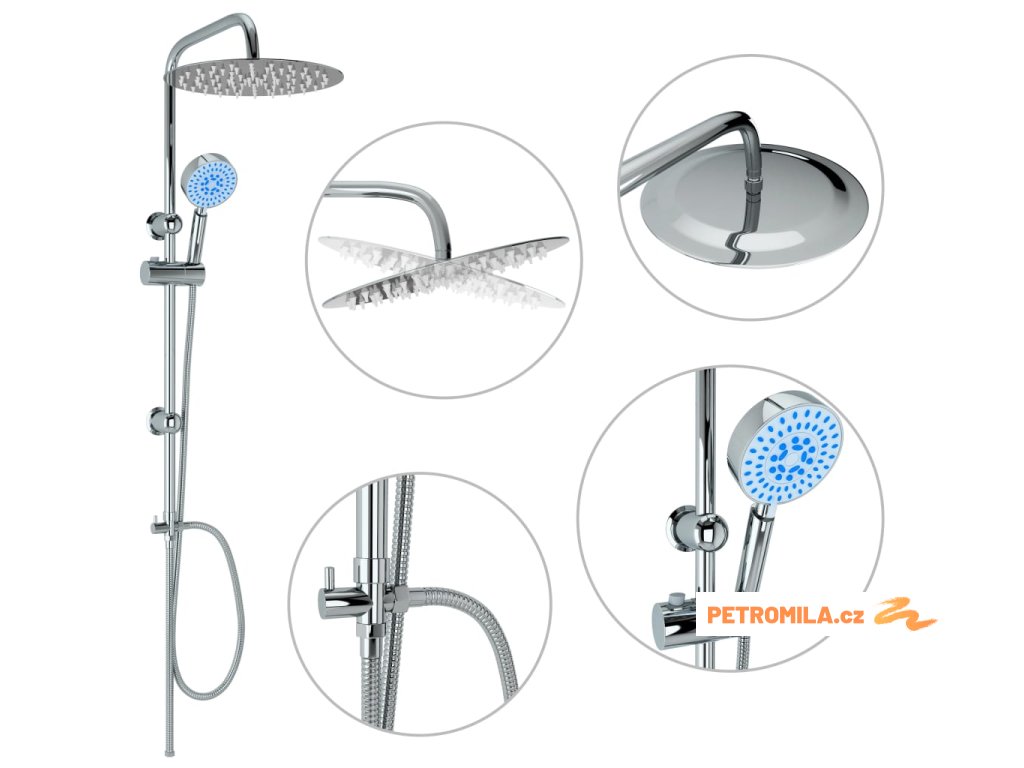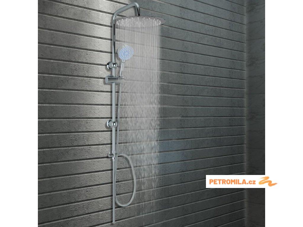 - Materiál: nerezová ocel (sprchová hlavice, hadice, tyč) + ABS (ruční sprcha)
