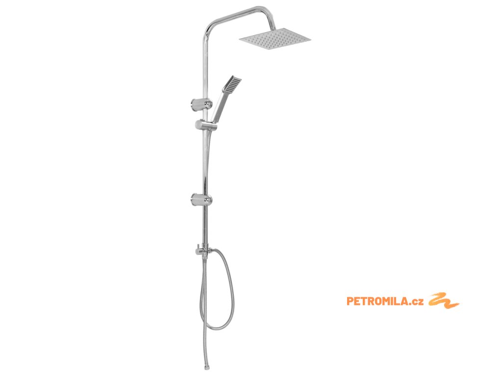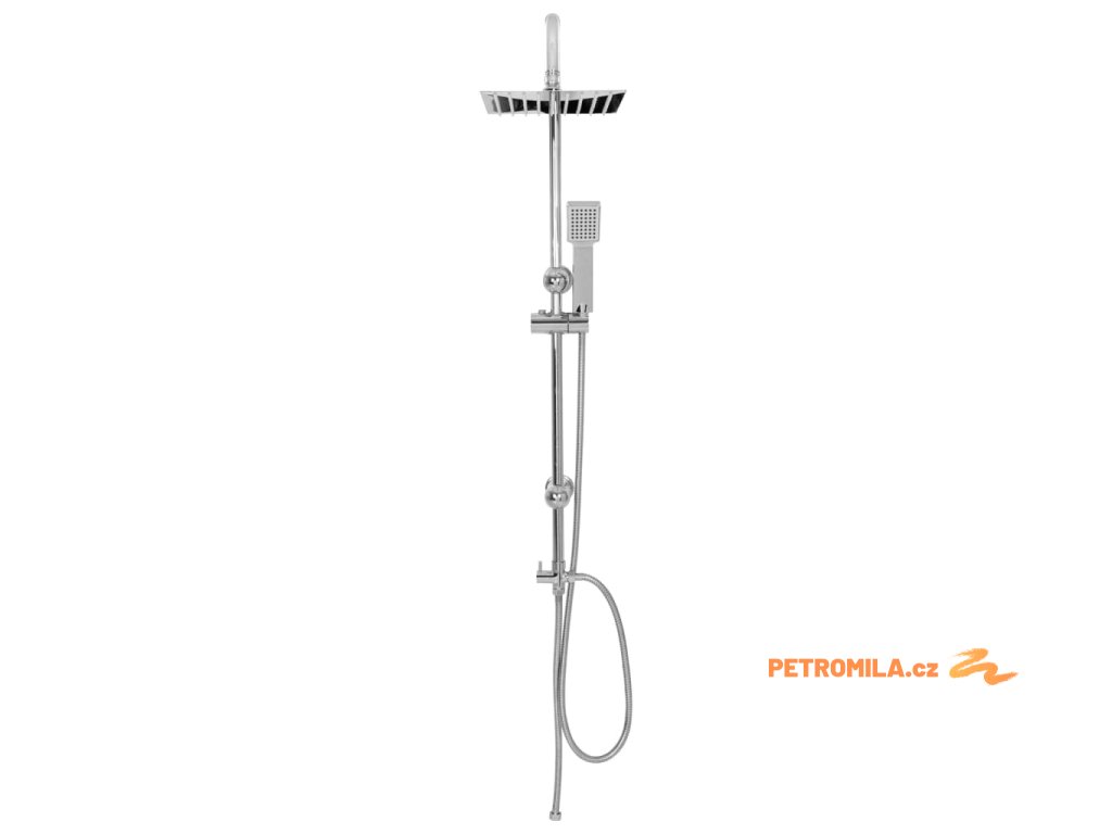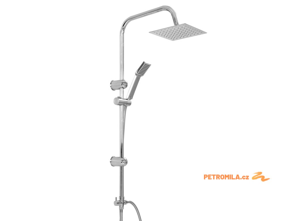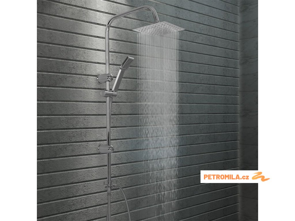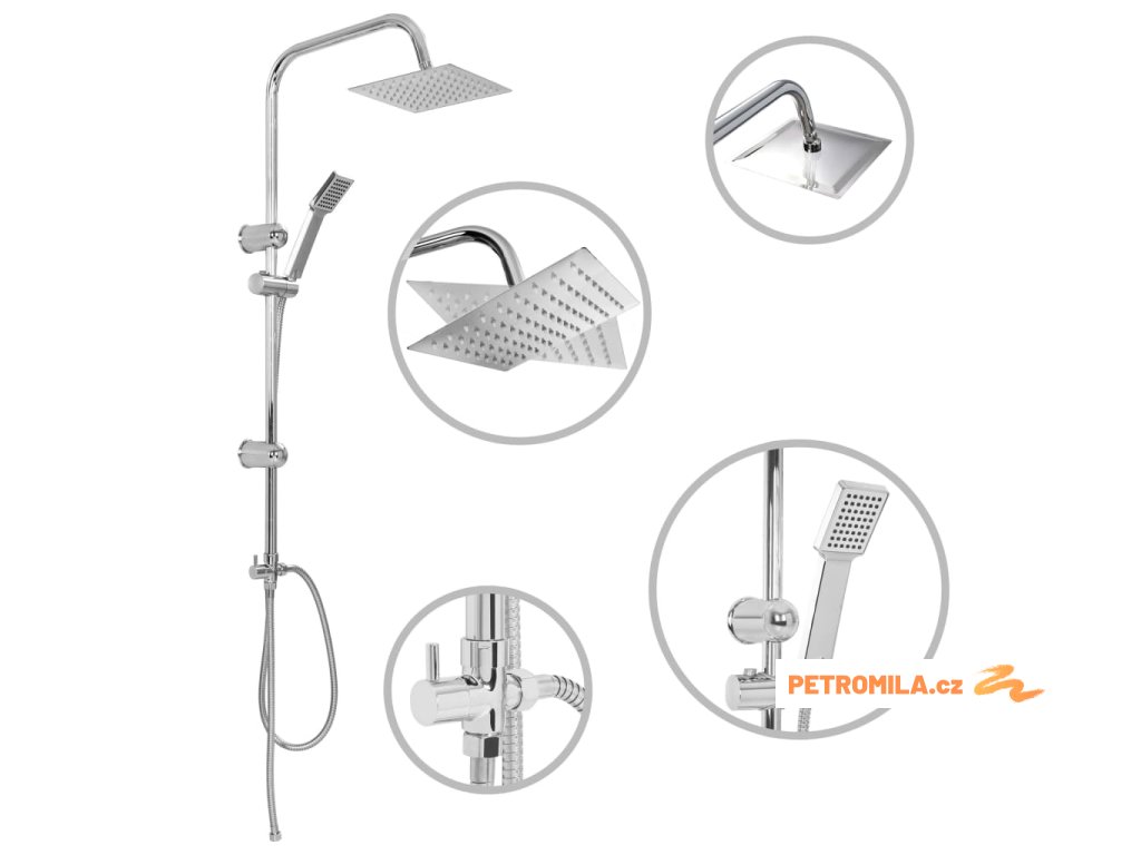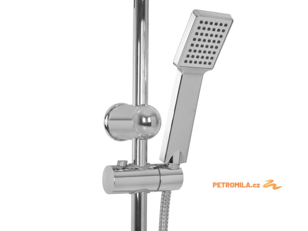- Materiál: nerezová ocel (sprchová hlavice, hadice, tyč) + ABS (ruční sprcha)