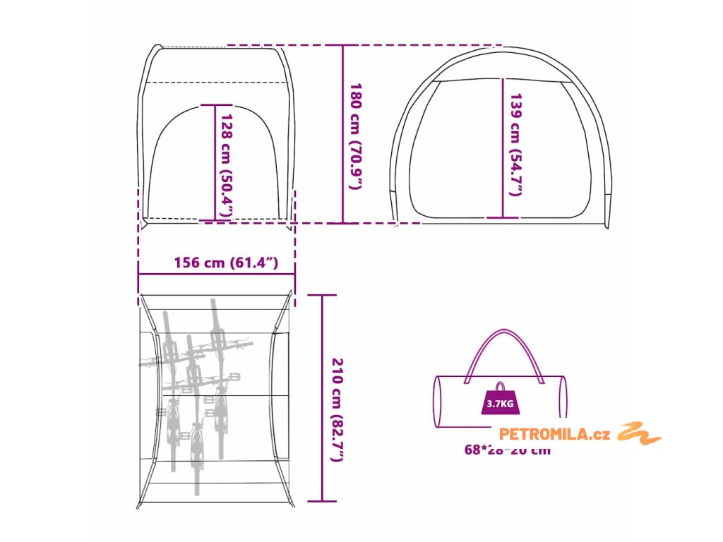 Odolné materiály: Dotahování voděodolného polyesteru a pevného sklolaminátu dělá tento stan vydržet. Polyethylenové a polypropylenové části zvyšují jeho odolnost a zajistí, že přečká všechno počasí. Kompletní vybavení: Stan má pět FRP tyčí (144 cm) a dvě delší tyče (460 cm) pro udržení tvaru. Navíc obsahuje čtyři lana (250 cm) a osm kolíků na upevnění, plus praktický nosný pytel pro jednoduchý transport. Funkční design: Je skládací, což ti umožní ho rychle sbalit, když je málo místa. Odolnost vůči větru dodává solidní ochranu při poryvech, což z něj dělá spolehlivou volbu na nepředvídatelné kempování. Funkční doporučení: Skvělý na skladování kol, tenhle stan je ideální pro cyklisty. Ať už kempuješ v hustých lesích nebo na horských stezkách, poskytuje kromě místa na kola i úložný prostor na další potřebnosti. Péče a údržba: Aby zůstal v kondici, pravidelně ho zbavuj nečistot, když je suchý, a po každém použití ho umyj. A nezapomeň, že bys ho měl ukládat suchý, aby vypadalo dobře na dalším výletě.- Barva: Šedá a oranžová