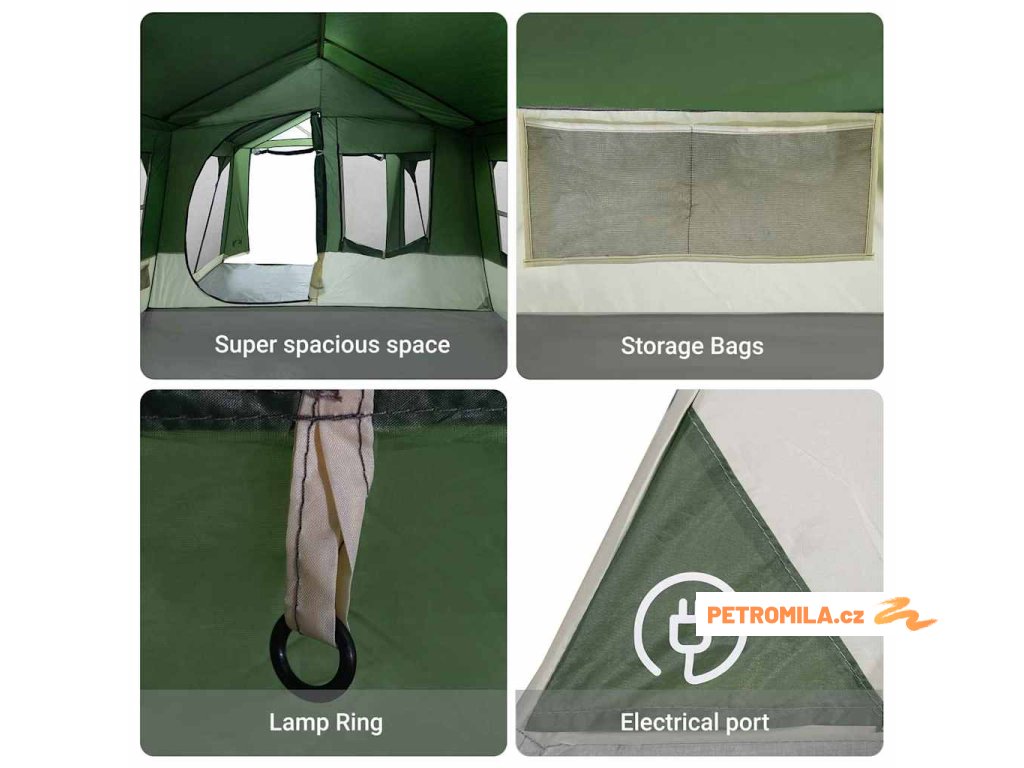 - Doporučené použití: Perfektní pro kempování, tento stan je univerzální pro všechny druhy outdoorové zábavy. Ať už si odpočíváš v zahradě nebo se jdeš na túru, skvěle zapadne do tvého okolí.