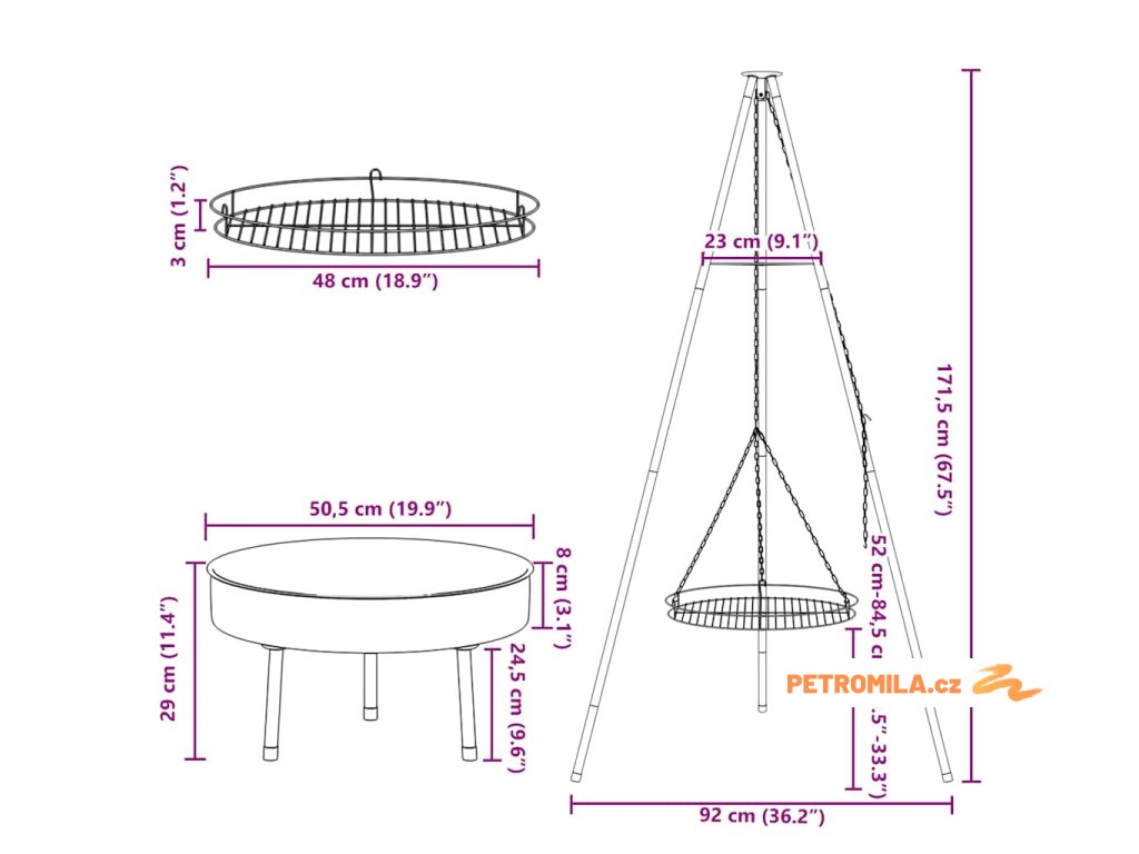 - Materiály: Vyrobeno z kvalitních materiálů, trojnožka se nebojí vysokých teplot z ohňů, takže je bezpečná a trvanlivá. Perfektní pro všechny venkovní aktivity, od kempování po grilování.