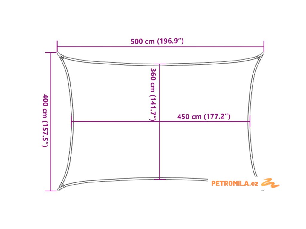 - Snadná montáž: Sluneční plachtu je snadné sestavit pomocí nerezových upevňovacích prvků v každém rohu a přiložených lan.