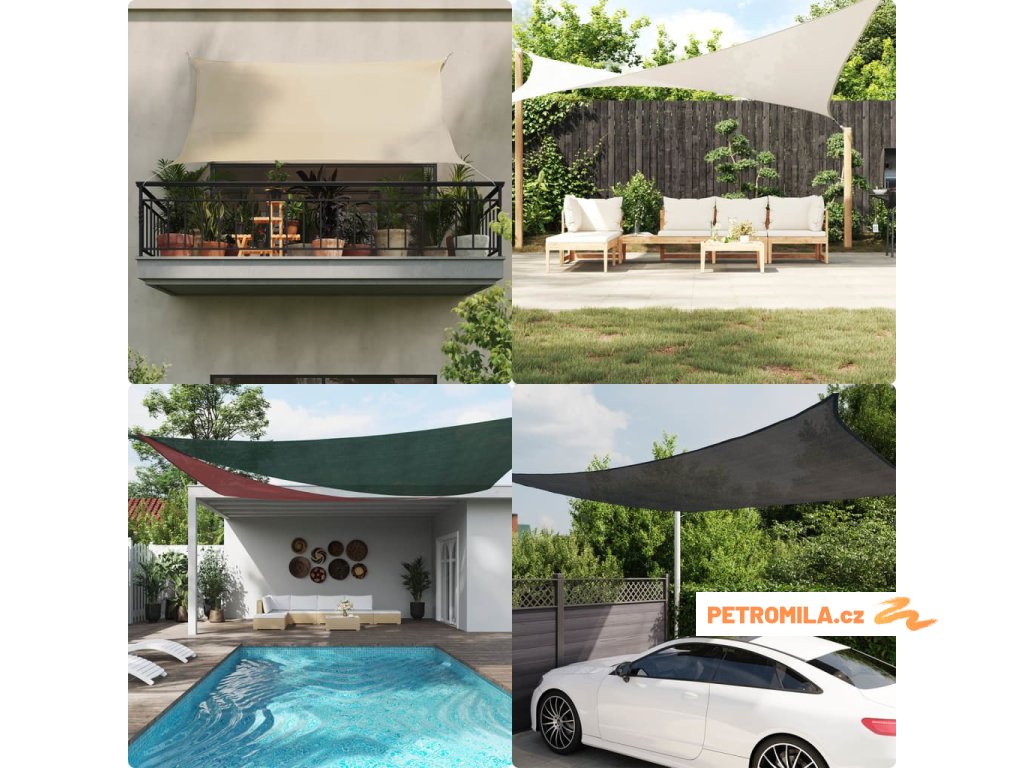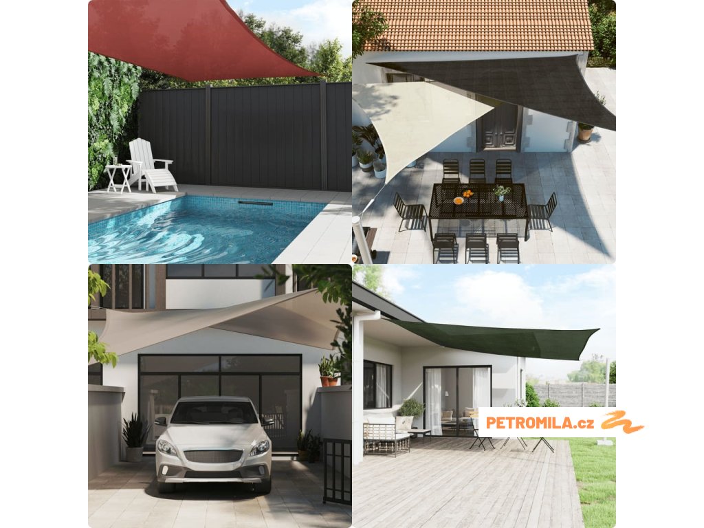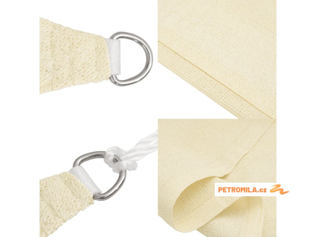 Sluneční plachta vyrobená ze 100% HDPE (vysokohustotní polyethylen) vás chrání před přímým slunečním zářením, umožňuje dostatečný průchod vzduchu a je propustná pro vodu. HDPE je speciálně upraven, takže je odolný proti plísním a UV záření. Slunečník se snadno sestavuje pomocí nerezových upevňovacích prvků na každém rohu a přiložených lanek.